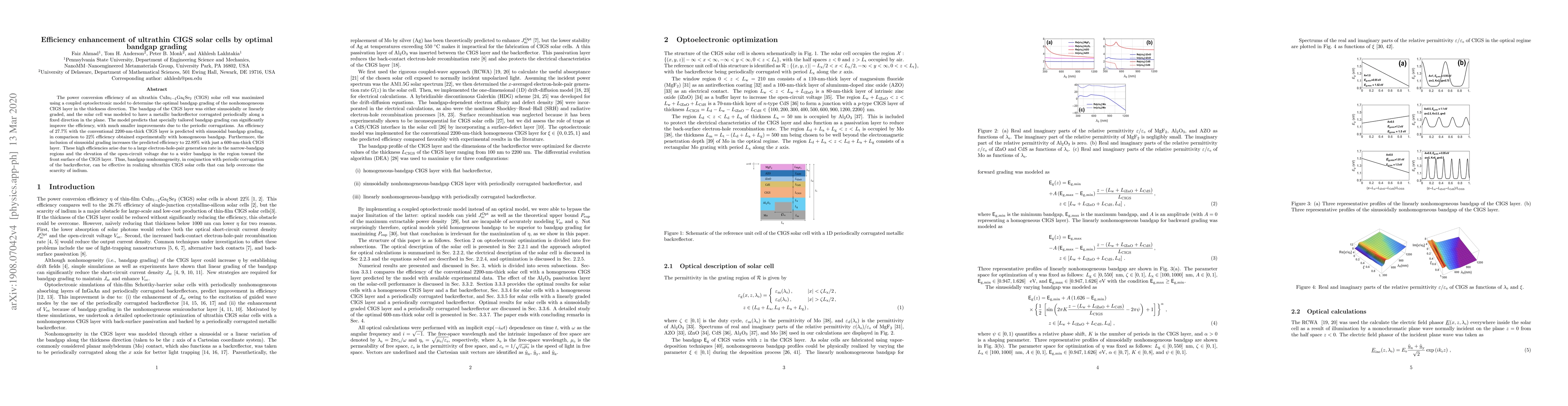 Researchers found that specially tailored bandgap grading in ultrathin CIGS solar cells can significantly improve efficiency, with predicted efficiencies up to 22.89% compared to experimental results of 22%.