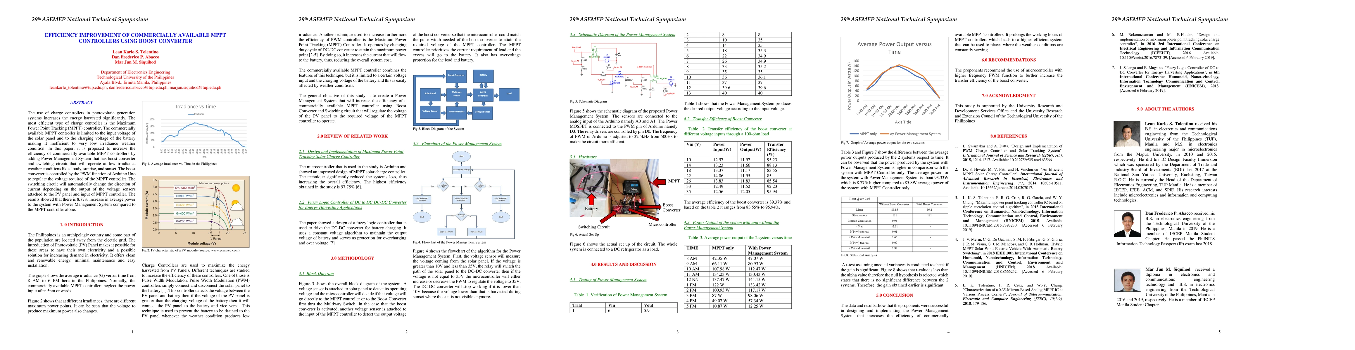 This paper proposes enhancing commercially available MPPT controllers with a boost converter and switching circuit to improve efficiency under low irradiance conditions. Results indicate an 8.77% increase in average power output with the added Power Management System compared to the MPPT controller alone.