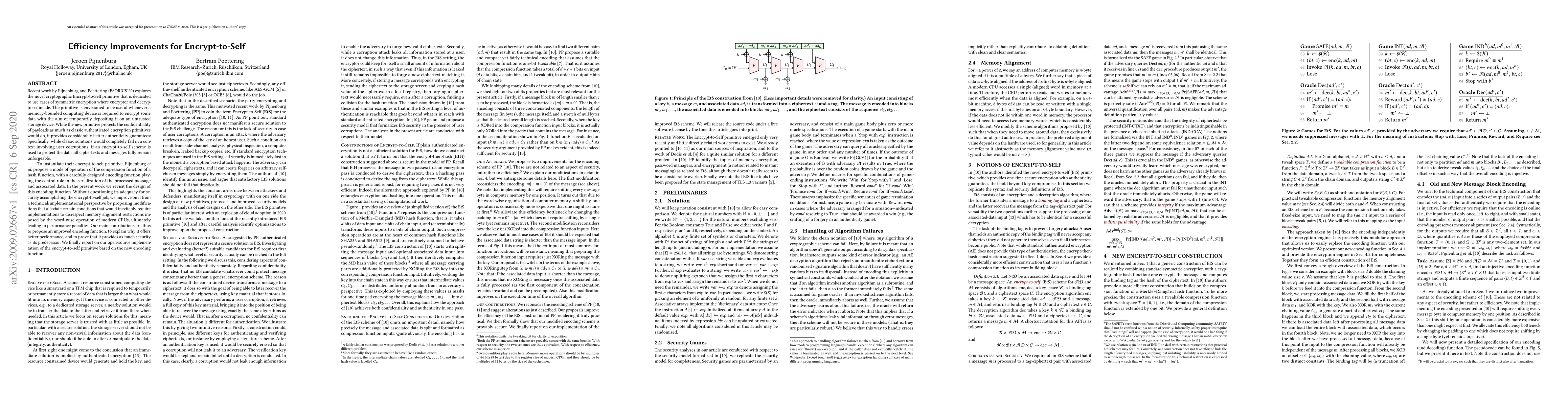 This paper proposes an improved encoding function for the Encrypt-to-Self primitive, enhancing its performance by addressing memory alignment restrictions, while maintaining the same level of security. The authors provide an open-source implementation demonstrating the practical benefits of their modifications.