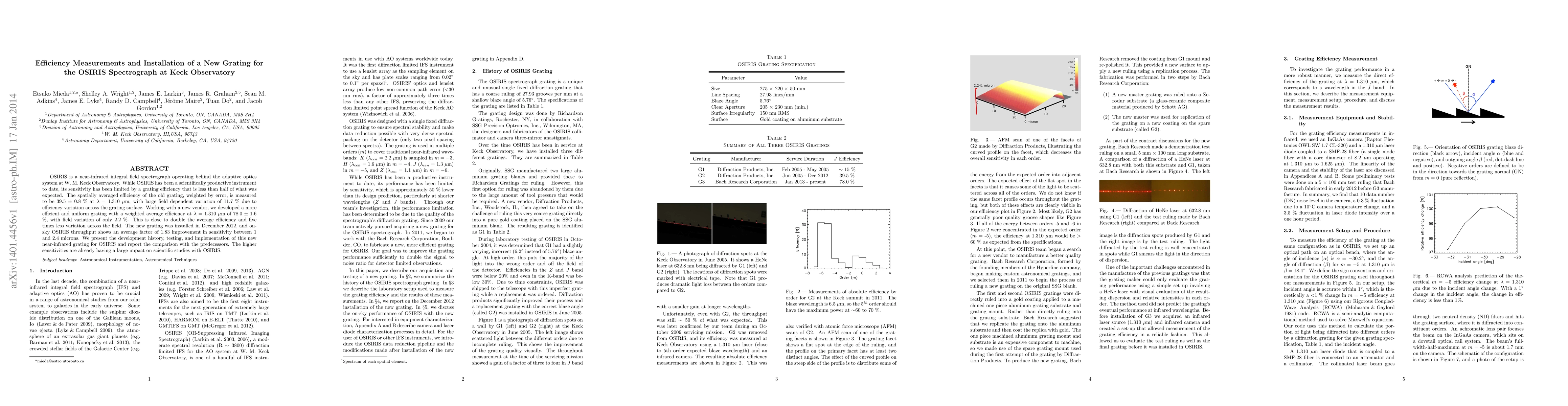This paper details the efficiency improvements achieved by installing a new grating for the OSIRIS spectrograph at the Keck Observatory, which now shows an average efficiency of 78% compared to the previous 39.5%, significantly reducing field-dependent variations and enhancing the instrument's sensitivity.