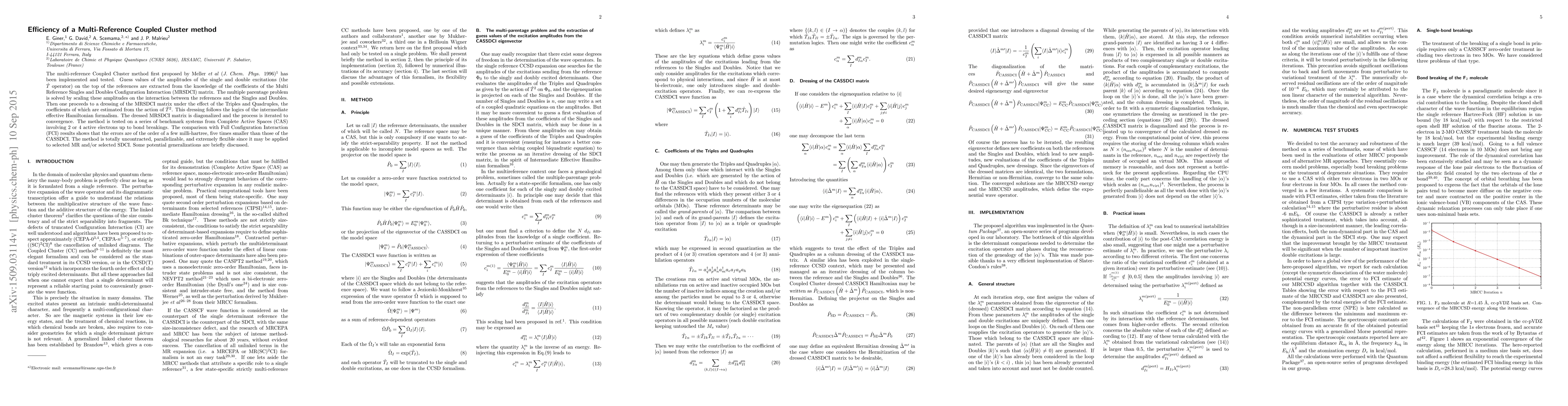 The multi-reference Coupled Cluster method first proposed by Meller et al (J. Chem. Phys. 1996) has been implemented and tested. Guess values of the amplitudes of the single and double excitations (the ${\hat T}$ operator) on the top of the references are extracted from the knowledge of the coefficients of the Multi Reference Singles and Doubles Configuration Interaction (MRSDCI) matrix. The multiple parentage problem is solved by scaling these amplitudes on the interaction between the references and the Singles and Doubles. Then one proceeds to a dressing of the MRSDCI matrix under the effect of the Triples and Quadruples, the coefficients of which are estimated from the action of ${\hat T}^2$. This dressing follows the logics of the intermediate effective Hamiltonian formalism. The dressed MRSDCI matrix is diagonalized and the process is iterated to convergence. The method is tested on a series of benchmark systems from Complete Active Spaces (CAS) involving 2 or 4 active electrons up to bond breakings. The comparison with Full Configuration Interaction (FCI) results shows that the errors are of the order of a few milli-hartree, five times smaller than those of the CASSDCI. The method is totally uncontracted, parallelizable, and extremely flexible since it may be applied to selected MR and/or selected SDCI. Some potential generalizations are briefly discussed.