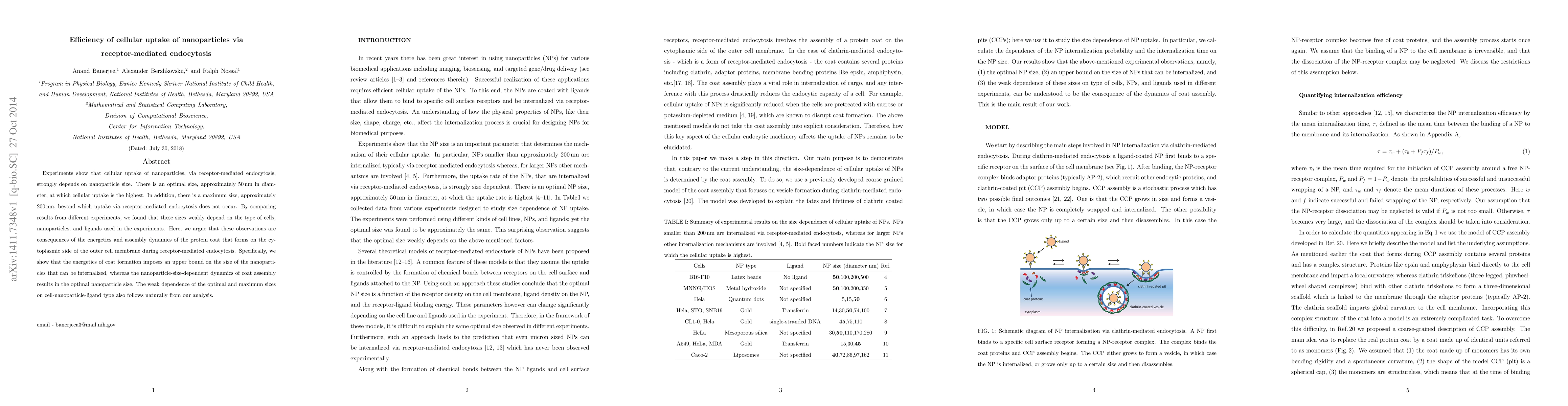This research investigates the efficiency of nanoparticle uptake via receptor-mediated endocytosis, finding an optimal size of around 50 nm for maximum uptake and a maximum size of 200 nm beyond which uptake ceases. The study attributes these size-dependent behaviors to the energetics and dynamics of the protein coat formation during endocytosis.