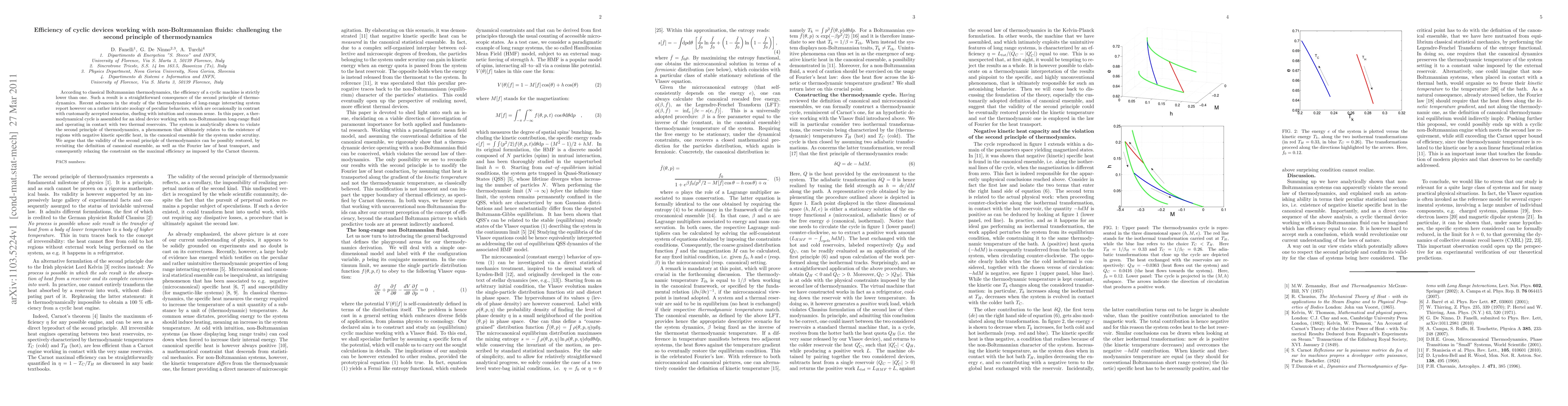 According to classical Boltzmannian thermodynamics, the efficiency of a cyclic machine is strictly lower than one. Such a result is a straightforward consequence of the second principle of thermodynamics. Recent advances in the study of the thermodynamics of long-range interacting system report however on a rather intricate zoology of peculiar behaviors, which are occasionally in contrast with customarily accepted scenarios, dueling with intuition and common sense. In this paper, a thermodynamical cycle is assembled for an ideal device working with non-Boltzmaniann long-range fluid and operating in contact with two thermal reservoirs. The system is analytically shown to violate the second principle of thermodynamics, a phenomenon that ultimately relates to the existence of regions with negative kinetic specific heat, in the canonical ensemble for the system under scrutiny. We argue that the validity of the second principle of thermodynamics can be possibly restored, by revisiting the definition of canonical ensemble, as well as the Fourier law of heat transport, and consequently relaxing the constraint on the maximal efficiency as imposed by the Carnot theorem.