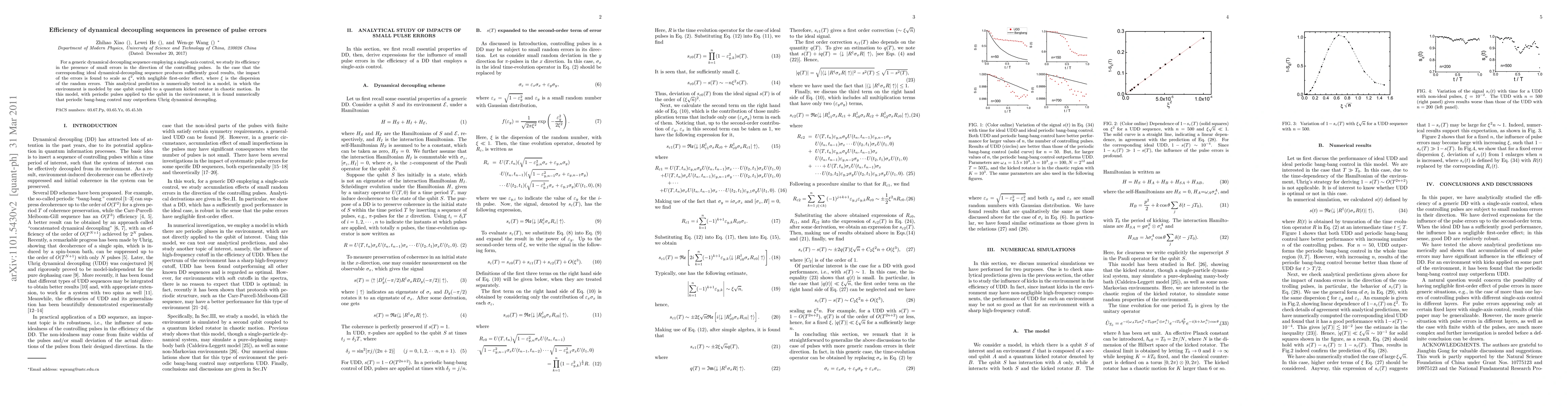 This paper investigates the efficiency of dynamical decoupling sequences under pulse errors, finding that errors scale quadratically with the dispersion of random errors. Numerical tests on a model with a qubit coupled to a quantum kicked rotator show that Uhrig dynamical decoupling does not outperform bang-bang control.
