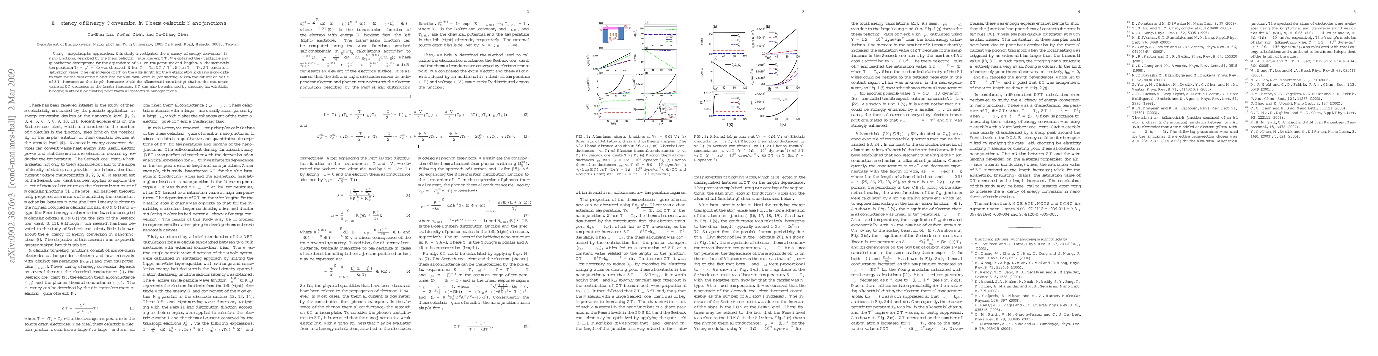 Using first-principles approaches, this study investigated the efficiency of energy conversion in nanojunctions, described by the thermoelectric figure of merit $ZT$. We obtained the qualitative and quantitative descriptions for the dependence of $ZT$ on temperatures and lengths. A characteristic temperature: $T_{0}= \sqrt{\beta/\gamma(l)}$ was observed. When $T\ll T_{0}$, $ZT\propto T^{2}$. When $T\gg T_{0}$, $ZT$ tends to a saturation value. The dependence of $ZT$ on the wire length for the metallic atomic chains is opposite to that for the insulating molecules: for aluminum atomic (conducting) wires, the saturation value of $ZT$ increases as the length increases; while for alkanethiol (insulating) chains, the saturation value of $ZT$ decreases as the length increases. $ZT$ can also be enhanced by choosing low-elasticity bridging materials or creating poor thermal contacts in nanojunctions. The results of this study may be of interest to research attempting to increase the efficiency of energy conversion in nano thermoelectric devices.