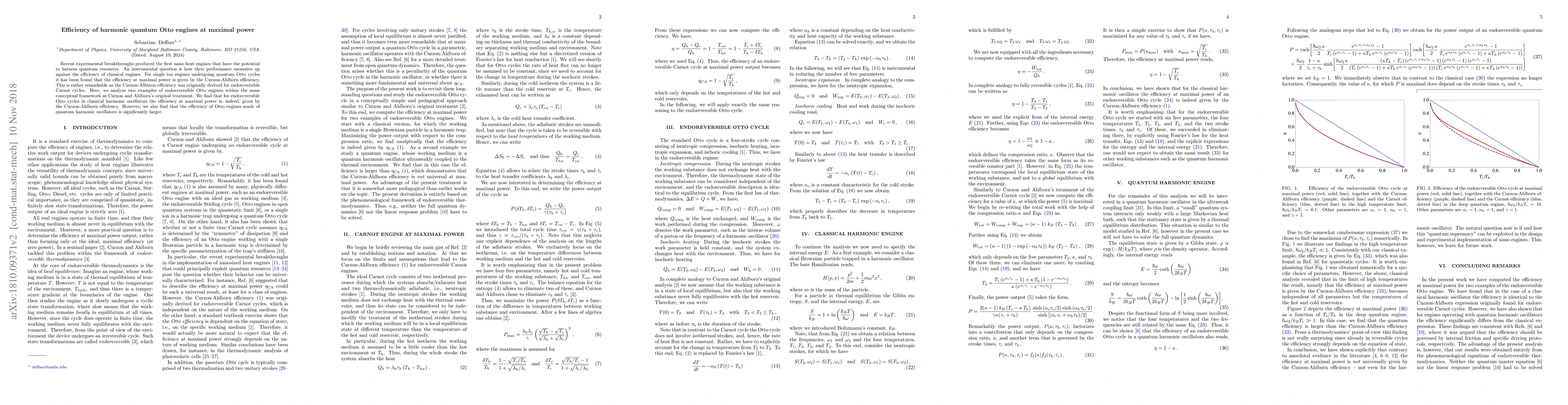 This paper investigates the efficiency of quantum Otto engines compared to classical ones, finding that while classical harmonic oscillator Otto engines achieve the Curzon-Ahlborn efficiency at maximal power, quantum harmonic oscillator Otto engines exhibit significantly higher efficiency.