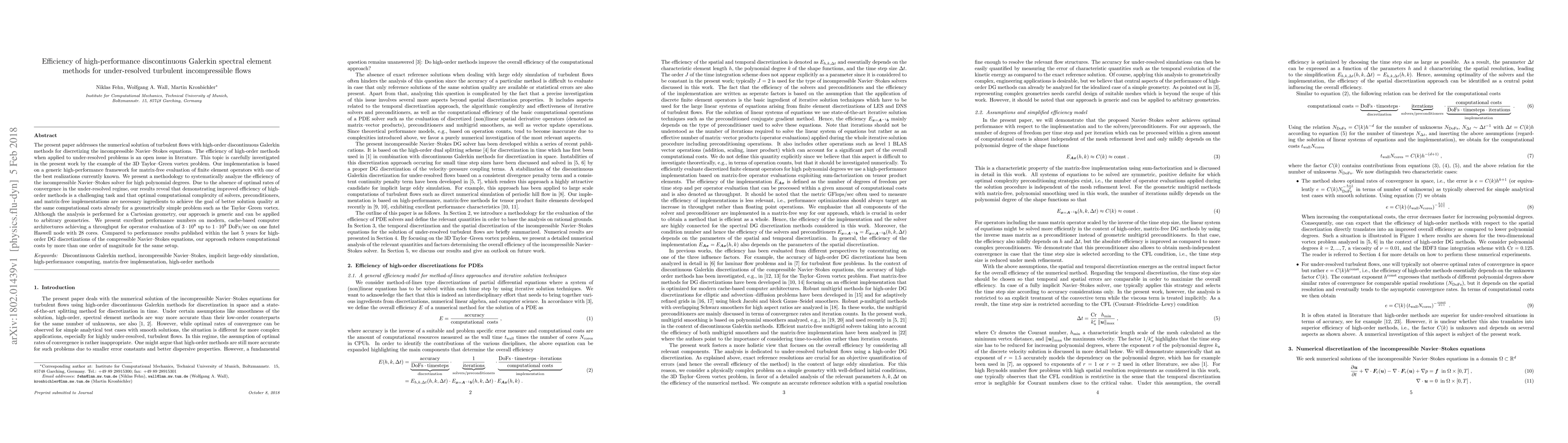 This paper investigates the efficiency of high-order discontinuous Galerkin spectral element methods for solving under-resolved turbulent incompressible flows using a 3D Taylor-Green vortex problem. The study highlights the challenges in achieving improved efficiency for high-order methods and emphasizes the necessity of optimal solvers and preconditioners for better performance.