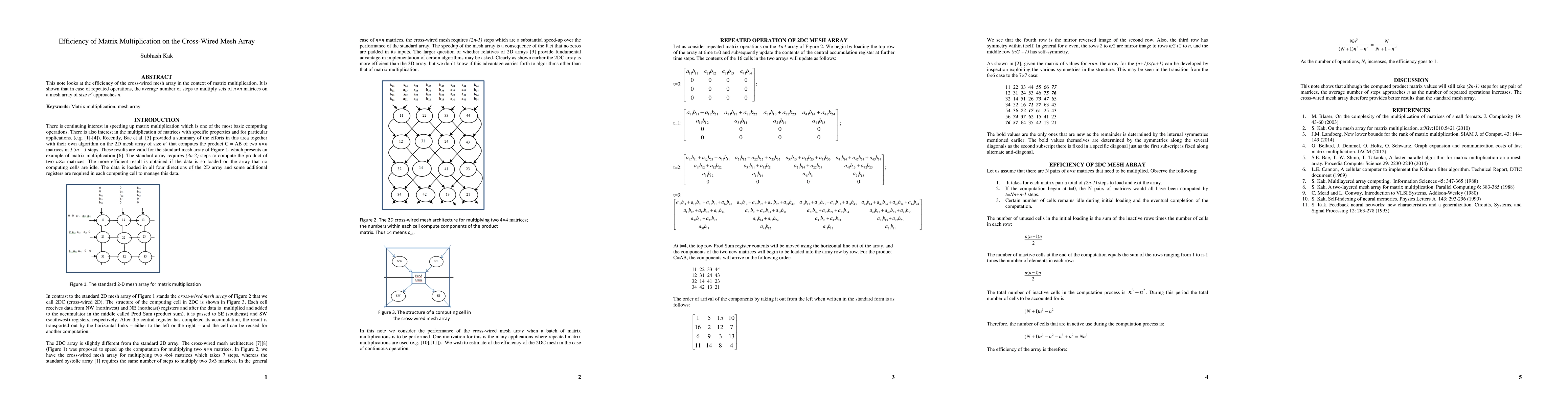 This note looks at the efficiency of the cross-wired mesh array in the context of matrix multiplication. It is shown that in case of repeated operations, the average number of steps to multiply sets of nxn matrices on a 2D cross-wired mesh array approaches n.