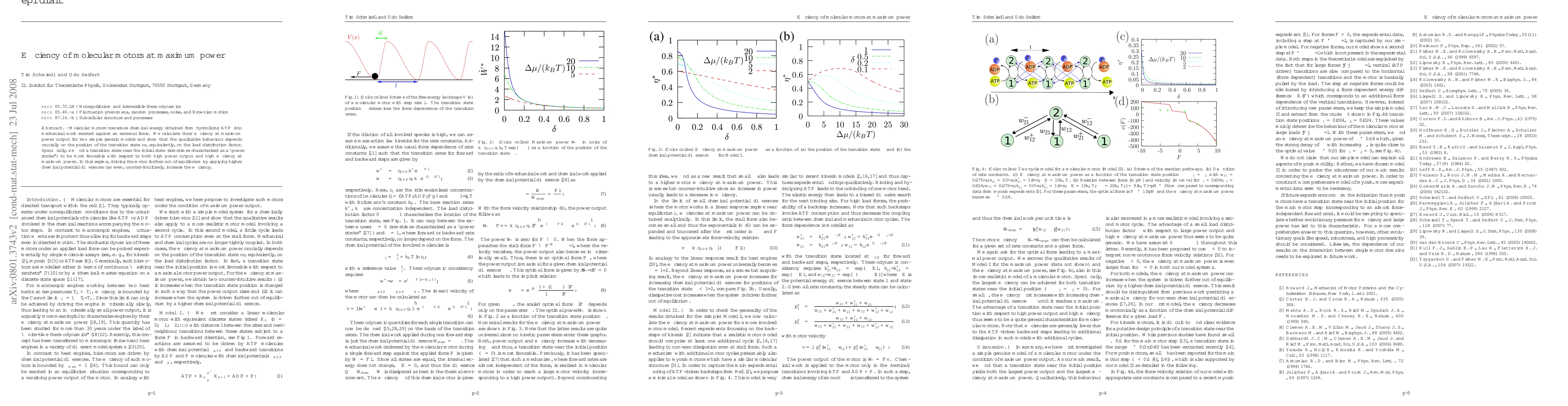 This paper investigates the efficiency of molecular motors at maximum power output, finding that a transition state near the initial state, often termed a "power stroke," is optimal for both high power and efficiency. Surprisingly, higher chemical potential differences can enhance efficiency in this regime.