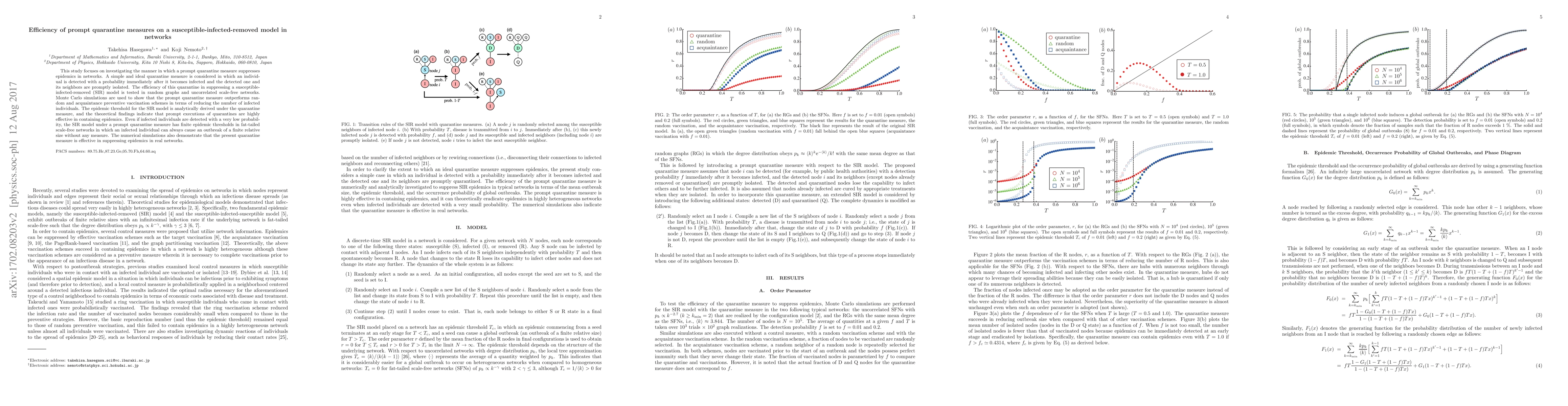 This study evaluates the effectiveness of prompt quarantine measures in suppressing epidemics within susceptible-infected-removed (SIR) models across random and scale-free networks. Monte Carlo simulations show that prompt quarantine outperforms other preventive measures, and theoretical analysis reveals finite epidemic thresholds even with low detection rates.