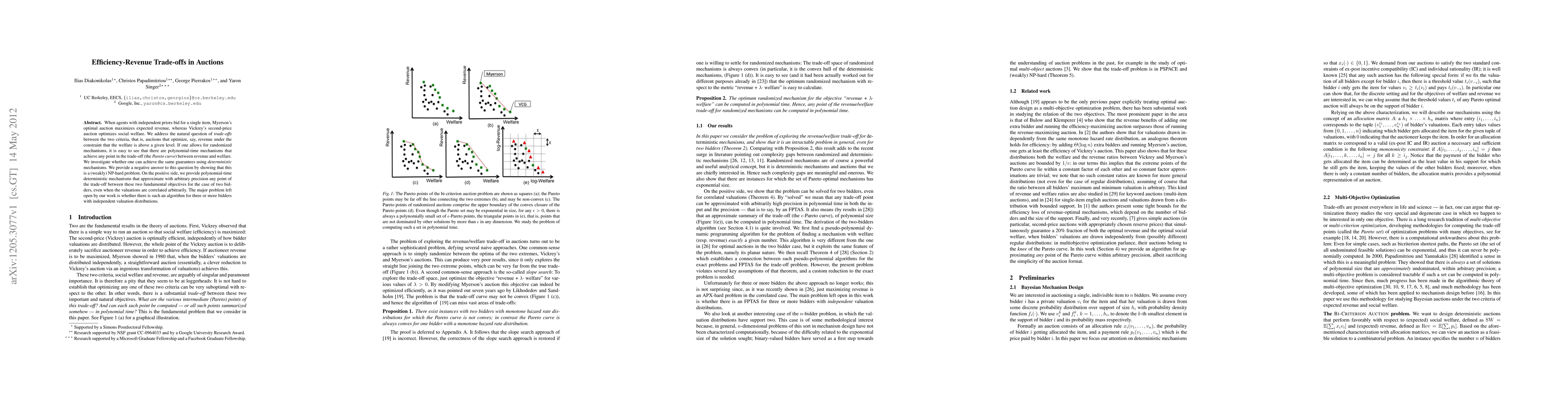 This paper explores the trade-off between maximizing expected revenue and optimizing social welfare in auctions, demonstrating that achieving both objectives simultaneously using deterministic mechanisms is NP-hard. It provides polynomial-time deterministic approximations for two bidders, leaving open the question for three or more bidders.