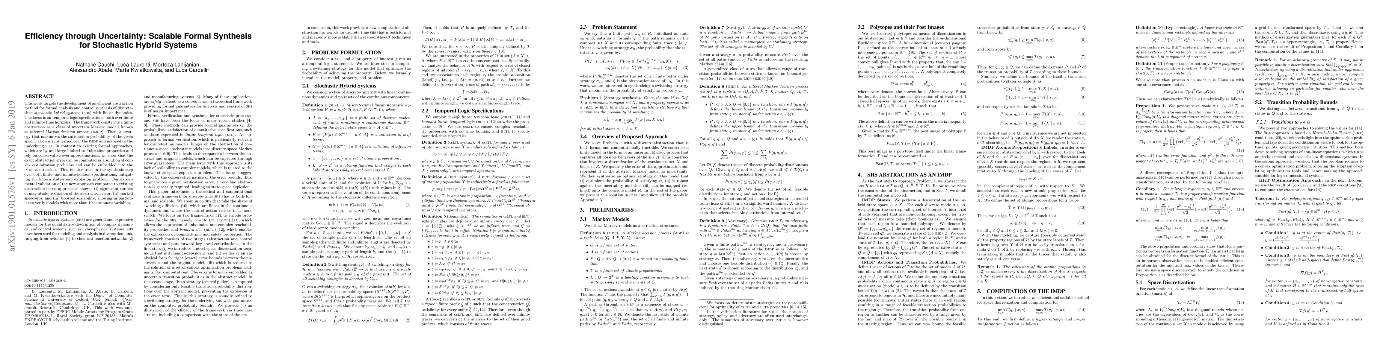 This paper develops an efficient abstraction method for formal synthesis of stochastic hybrid systems, using interval Markov decision processes to precisely compute abstraction error through convex optimization, resulting in significant reduction in error, speed-ups, and enhanced scalability. Experimental results demonstrate orders of magnitude reduction in abstraction error and verification of systems with more than 10 continuous variables.