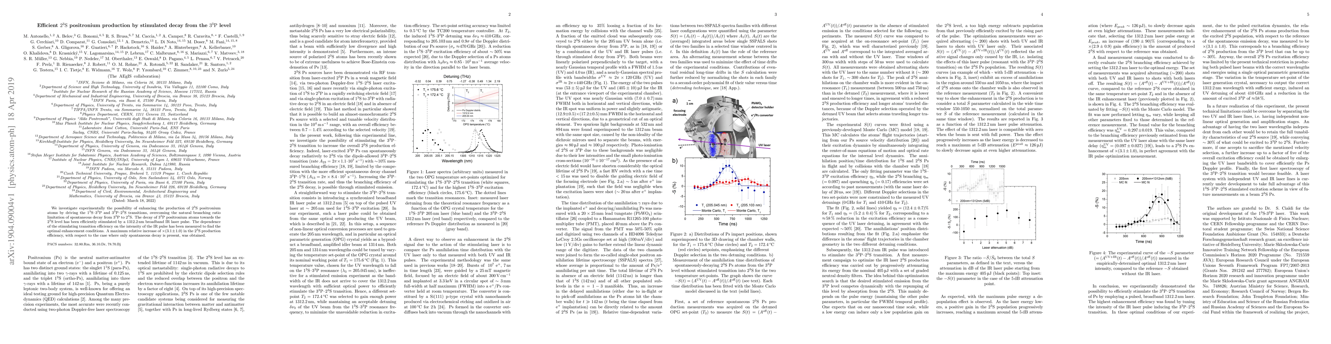 This paper investigates experimentally the enhanced production of $2^3S$ positronium atoms via stimulated decay from the $3^3P$ level using a 1312.2nm IR laser pulse, achieving a maximum relative increase of $ \times (3.1 \pm 1.0) $ in production efficiency compared to spontaneous decay.