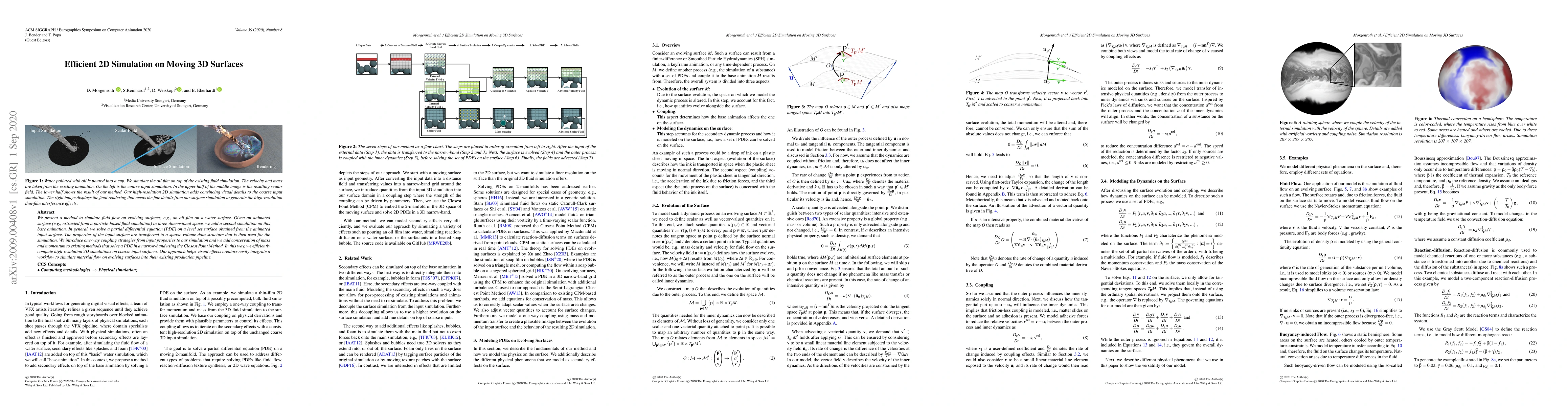 We present a method to simulate fluid flow on evolving surfaces, e.g., an oil film on a water surface. Given an animated surface (e.g., extracted from a particle-based fluid simulation) in three-dimensional space, we add a second simulation on this base animation. In general, we solve a partial differential equation (PDE) on a level set surface obtained from the animated input surface. The properties of the input surface are transferred to a sparse volume data structure that is then used for the simulation. We introduce one-way coupling strategies from input properties to our simulation and we add conservation of mass and momentum to existing methods that solve a PDE in a narrow-band using the Closest Point Method. In this way, we efficiently compute high-resolution 2D simulations on coarse input surfaces. Our approach helps visual effects creators easily integrate a workflow to simulate material flow on evolving surfaces into their existing production pipeline.