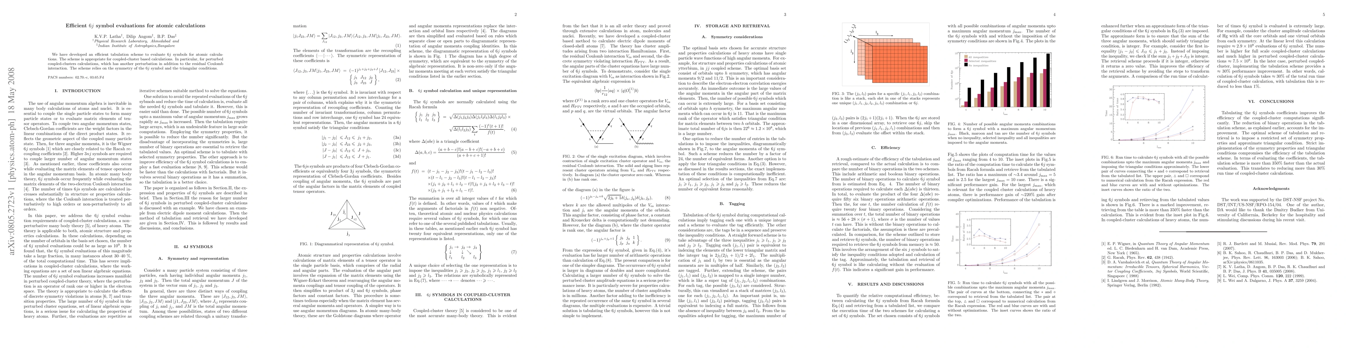 Summary: This research introduces a new tabulation scheme for efficiently evaluating $6j$ symbols in atomic calculations, particularly benefiting coupled-cluster methods, especially for perturbed coupled-cluster calculations, leveraging symmetry and triangular conditions.