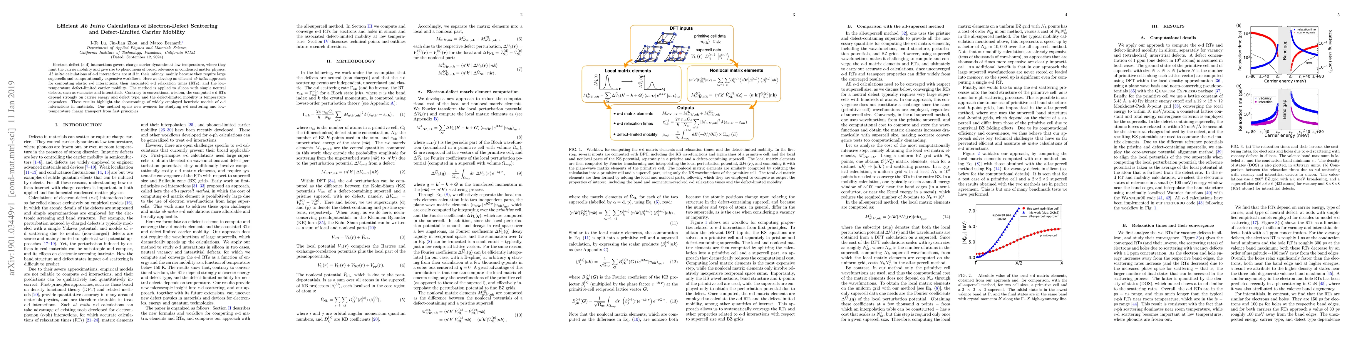 This paper presents an efficient ab initio method for calculating electron-defect interactions and defect-limited carrier mobility at low temperatures. The method reveals that defect-related relaxation times and mobility are strongly dependent on carrier energy and defect type, challenging existing heuristic models.