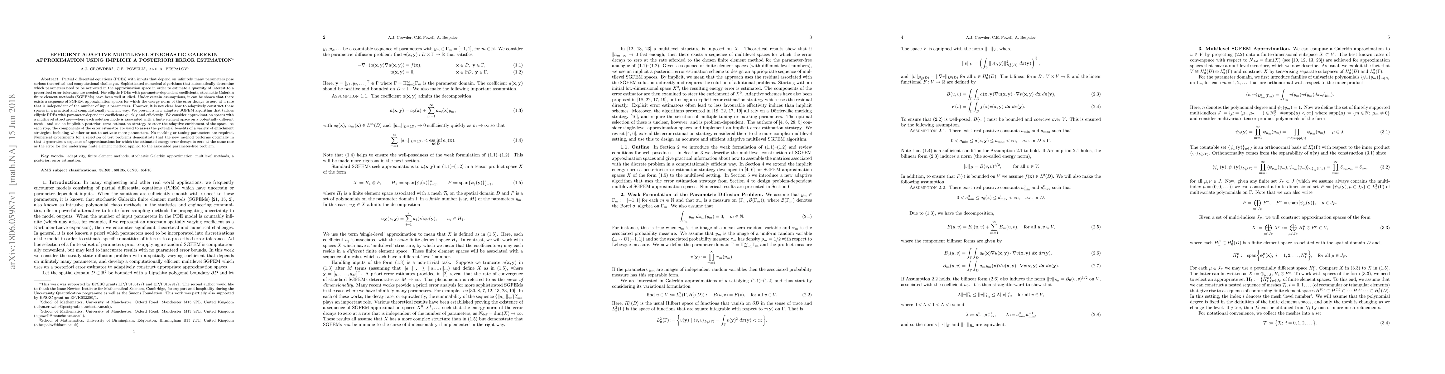 This paper introduces an efficient adaptive multilevel stochastic Galerkin finite element method for elliptic PDEs with parameter-dependent coefficients. The proposed algorithm uses implicit a posteriori error estimation to adaptively construct approximation spaces, optimizing computational efficiency while maintaining error decay rates.