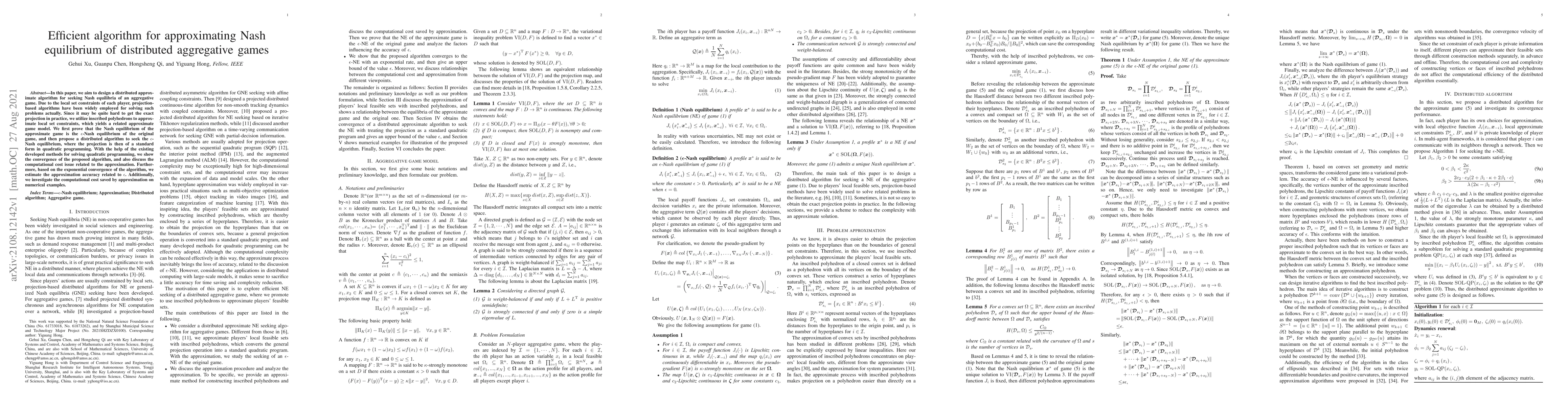 In this paper, we aim to design a distributed approximate algorithm for seeking Nash equilibria of an aggregative game. Due to the local set constraints of each player, projectionbased algorithms have been widely employed for solving such problems actually. Since it may be quite hard to get the exact projection in practice, we utilize inscribed polyhedrons to approximate local set constraints, which yields a related approximate game model. We first prove that the Nash equilibrium of the approximate game is the $\epsilon$-Nash equilibrium of the original game, and then propose a distributed algorithm to seek the $\epsilon$-Nash equilibrium, where the projection is then of a standard form in quadratic programming. With the help of the existing developed methods for solving quadratic programming, we show the convergence of the proposed algorithm, and also discuss the computational cost issue related to the approximation. Furthermore, based on the exponential convergence of the algorithm, we estimate the approximation accuracy related to $\epsilon$. Additionally, we investigate the computational cost saved by approximation on numerical examples.
