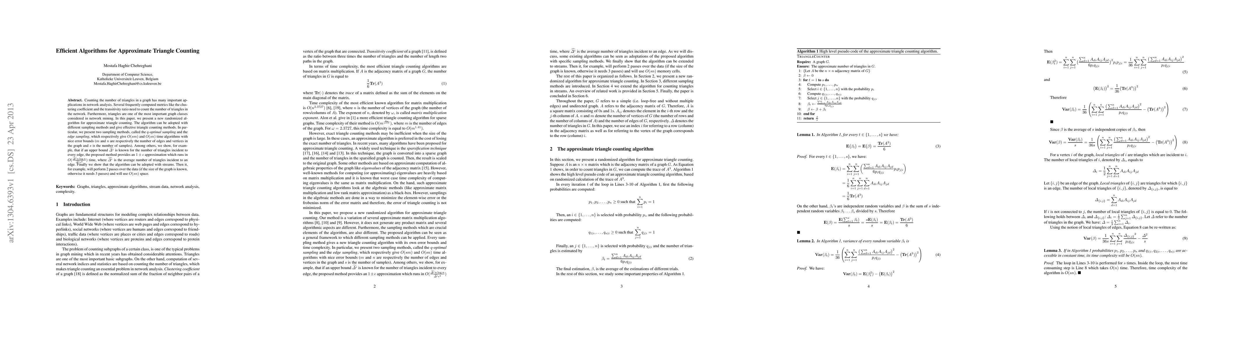 This paper introduces a new randomized algorithm for approximate triangle counting in graphs, which can be adapted with different sampling methods. The proposed $q$-optimal and edge sampling methods achieve efficient counting with $O(sm)$ and $O(sn)$ time complexity, respectively, and provide effective error bounds. The algorithm also adapts to streaming data, requiring 2 or 3 passes depending on graph size knowledge.