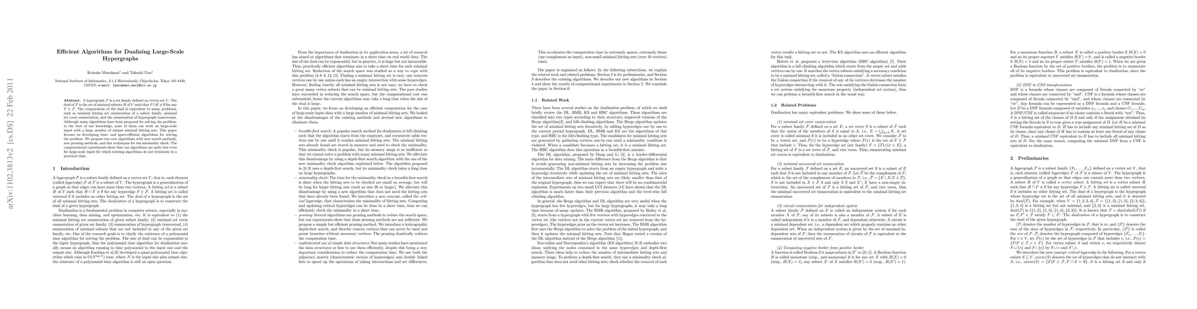 Researchers developed two efficient algorithms for computing the dual of large-scale hypergraphs, outperforming existing methods on large inputs.