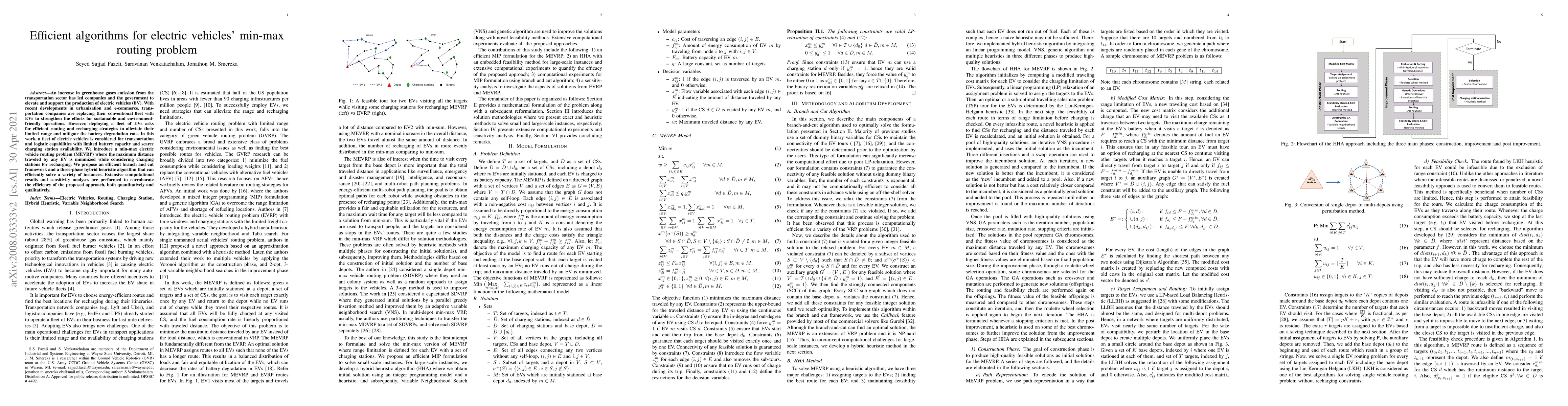 This paper proposes efficient algorithms for electric vehicles' routing problems to minimize maximum distance traveled while recharging at limited charging stations. It introduces a min-max electric vehicle routing problem framework and achieves efficient solutions using a branch and cut approach.