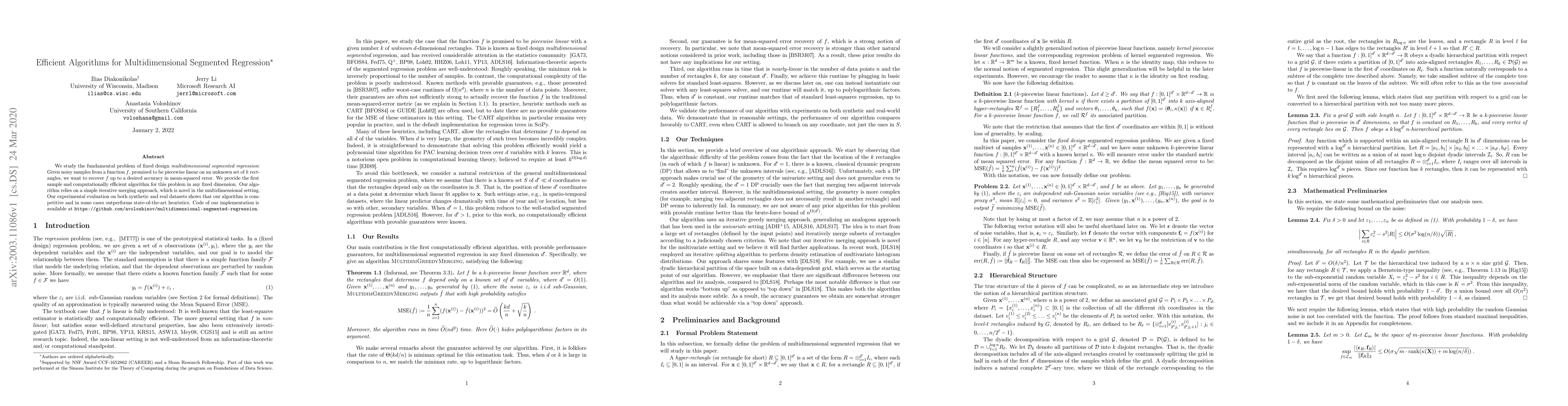 Researchers develop an efficient algorithm for multidimensional segmented regression, a problem in statistics that involves recovering a piecewise linear function from noisy data, with promising results on both synthetic and real datasets.