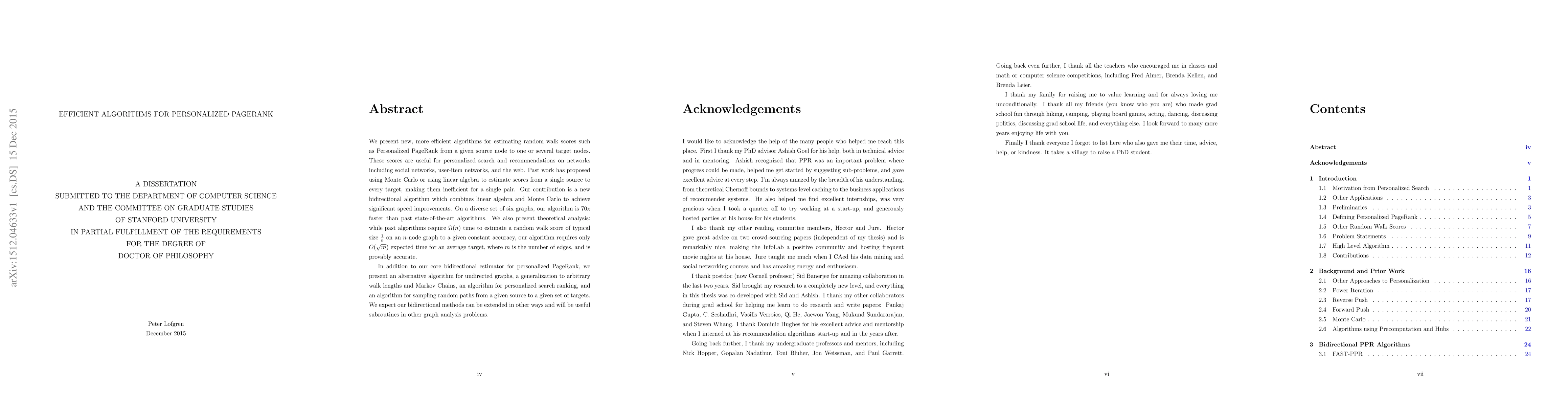 This paper introduces efficient algorithms for calculating Personalized PageRank, combining linear algebra and Monte Carlo methods to achieve significant speed improvements over existing approaches. Our bidirectional algorithm is 70x faster on diverse networks and requires only $O(\sqrt{m})$ expected time, offering both practical performance gains and theoretical accuracy guarantees.