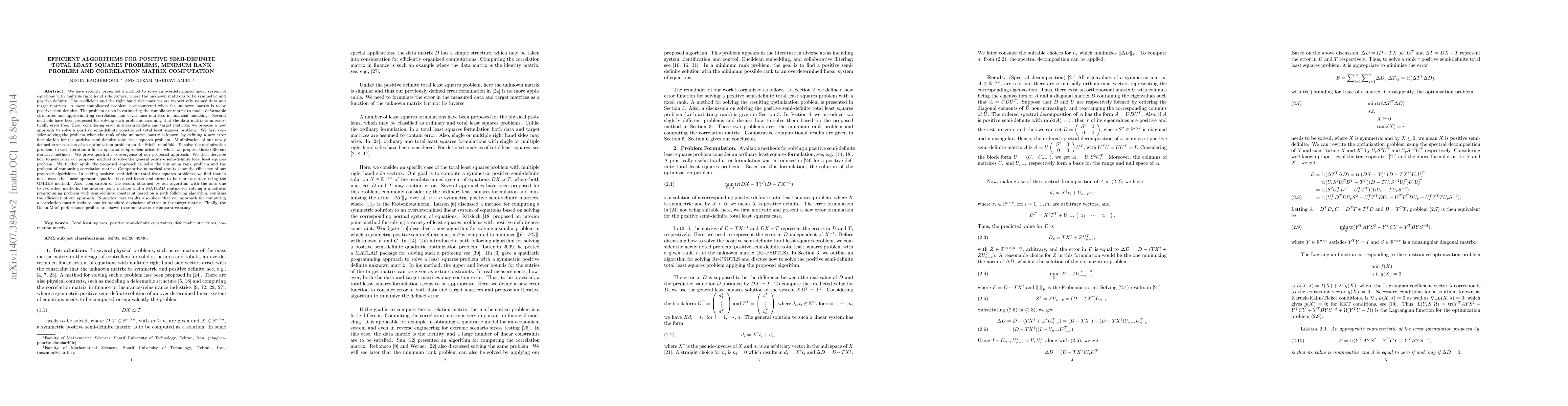 This paper proposes efficient algorithms for solving positive semi-definite total least squares problems, addressing the minimum rank problem and correlation matrix computation. The authors introduce a new error formulation and optimization methods on Stiefel manifolds, demonstrating quadratic convergence and comparative numerical efficiency.