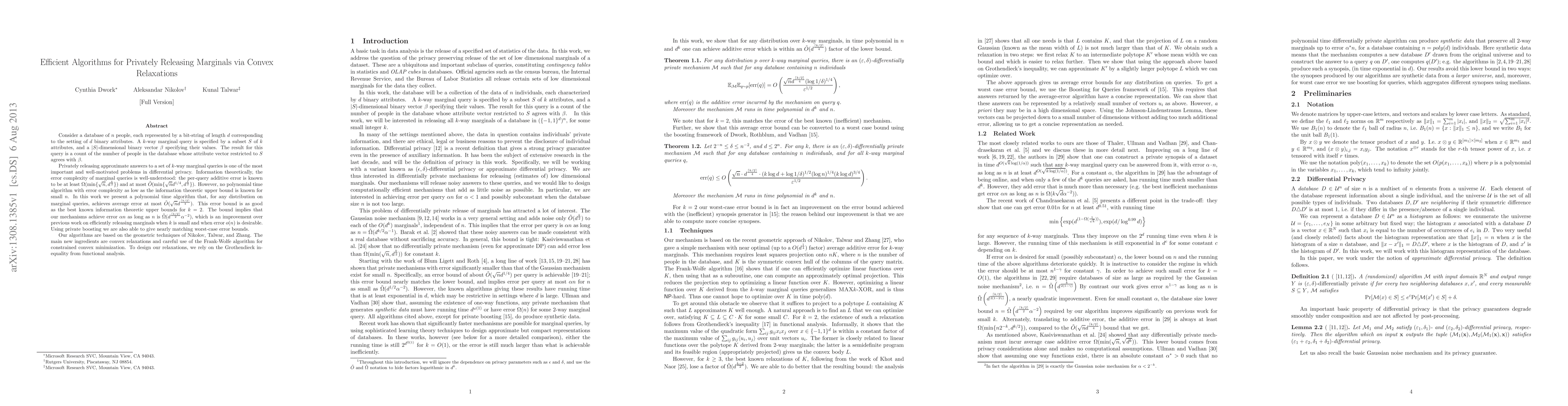 This paper presents polynomial-time algorithms for privately releasing approximate marginal queries with error bounds matching information-theoretic upper limits, specifically O(√n d^(k/8)). These algorithms leverage convex relaxations, Frank-Wolfe optimization, and Grothendieck inequality, improving upon previous methods for small k and low-error requirements.
