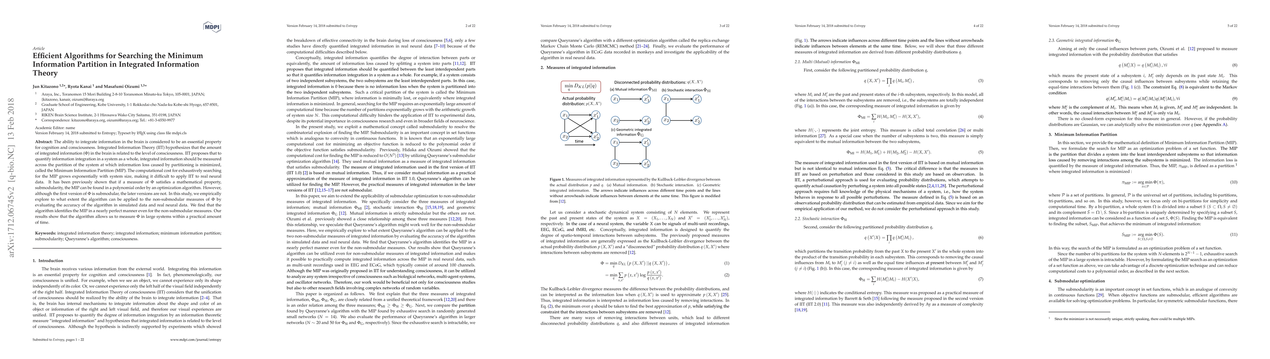 This paper explores efficient algorithms for finding the Minimum Information Partition (MIP) in Integrated Information Theory (IIT), which relates consciousness to the integration of information. Despite previous success with submodular measures, the study evaluates the algorithm's effectiveness on non-submodular measures, showing nearly perfect identification of MIP in both simulated and real neural data, thereby enabling practical application to large systems.