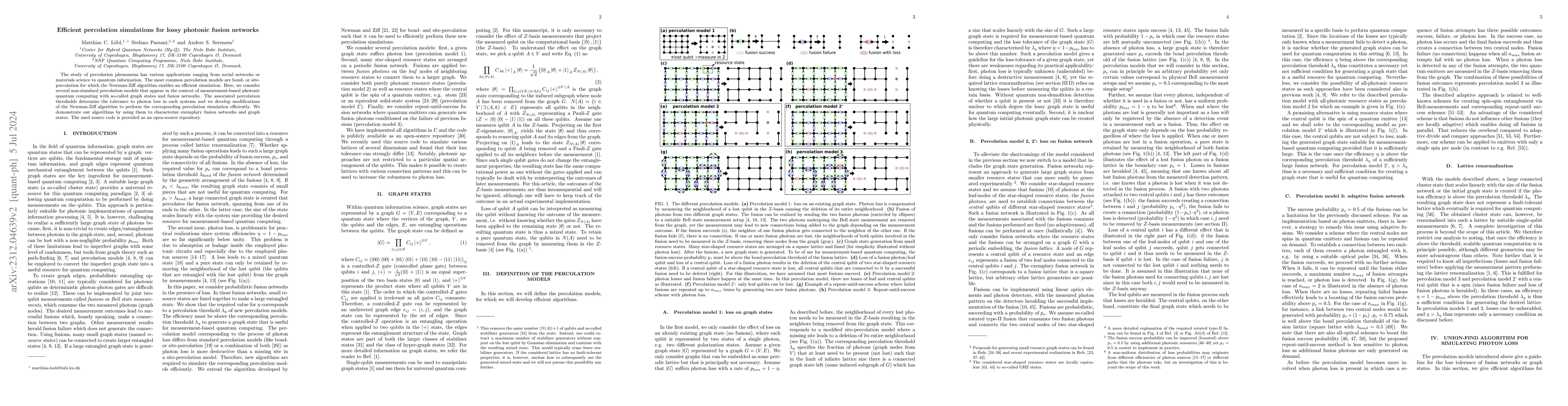 This paper develops efficient algorithms to simulate percolation in photonic fusion networks, focusing on non-standard models relevant to measurement-based quantum computing. It modifies the Newman-Ziff algorithm to analyze both non-adaptive and adaptive fusion networks, providing source code for characterizing these systems.