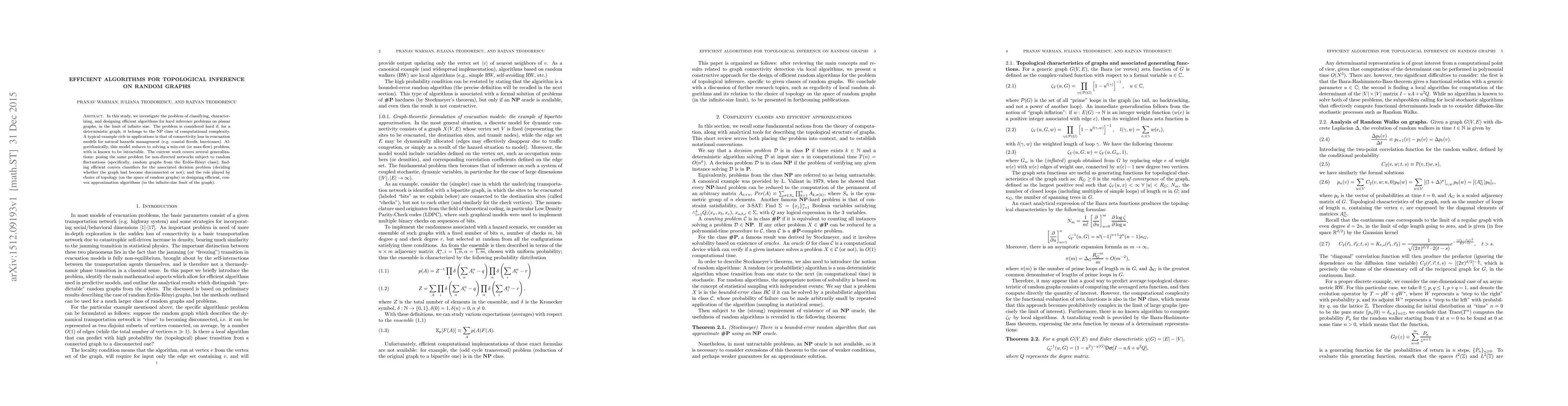 Researchers developed efficient algorithms for solving complex problems on random graphs, which can help predict connectivity loss in evacuation models for natural hazards management. The new methods use convex classifiers and topology to design efficient approximation algorithms.