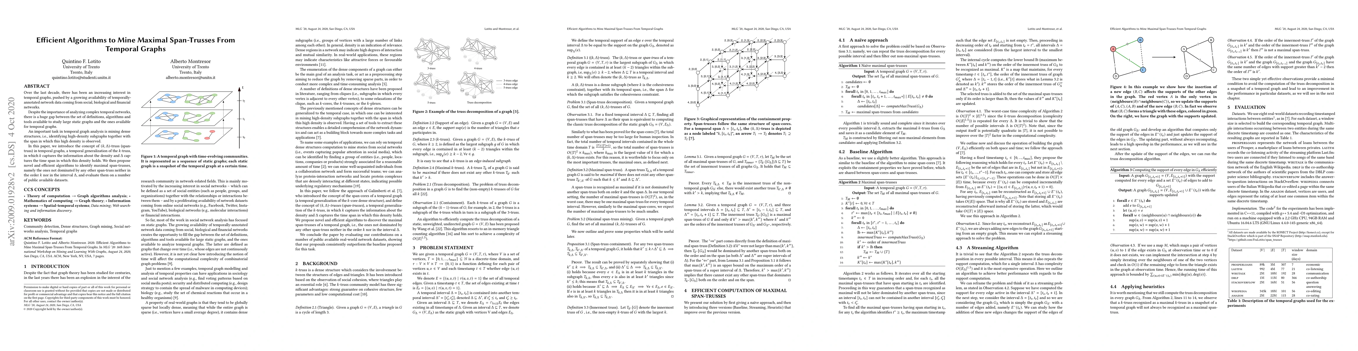 Over the last decade, there has been an increasing interest in temporal graphs, pushed by a growing availability of temporally-annotated network data coming from social, biological and financial networks. Despite the importance of analyzing complex temporal networks, there is a huge gap between the set of definitions, algorithms and tools available to study large static graphs and the ones available for temporal graphs. An important task in temporal graph analysis is mining dense structures, i.e., identifying high-density subgraphs together with the span in which this high density is observed. In this paper, we introduce the concept of $(k, \Delta)$-truss (span-truss) in temporal graphs, a temporal generalization of the $k$-truss, in which $k$ captures the information about the density and $\Delta$ captures the time span in which this density holds. We then propose novel and efficient algorithms to identify maximal span-trusses, namely the ones not dominated by any other span-truss neither in the order $k$ nor in the interval $\Delta$, and evaluate them on a number of public available datasets.