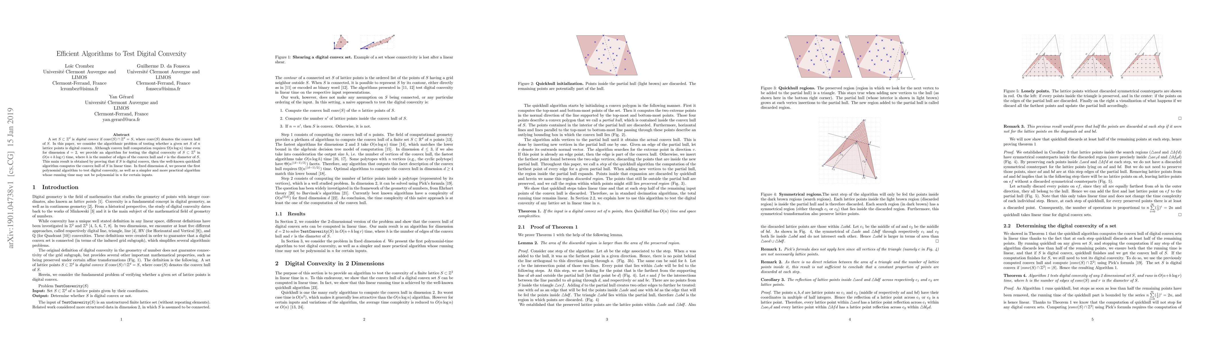 Researchers developed an algorithm to test if a set of lattice points in 2D space is digital convex, achieving O(n + h π r) time complexity, where n is the number of points, h is the hull's edge count, and r is the diameter.