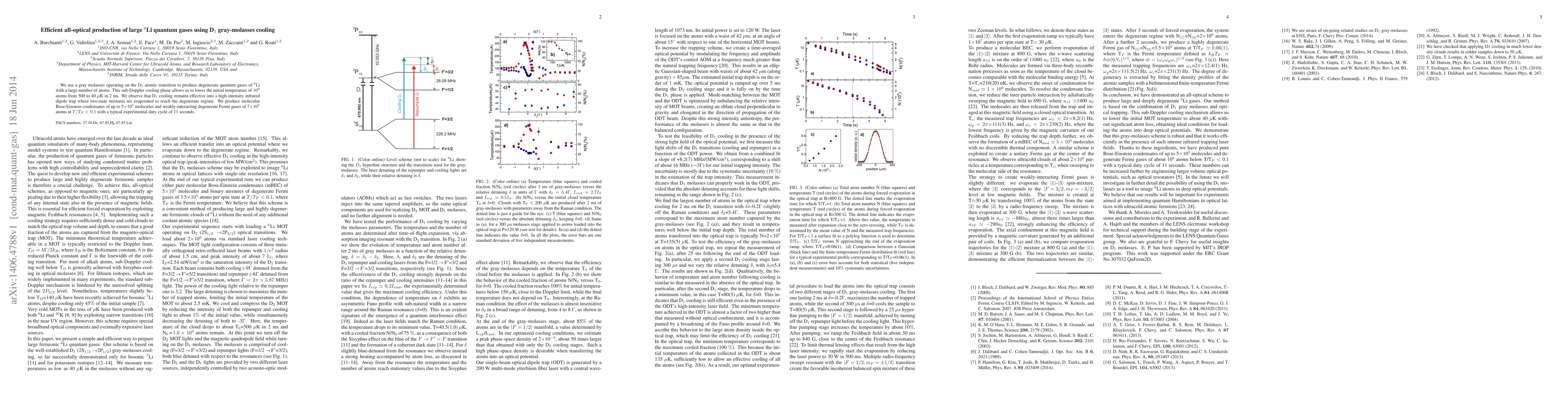 This paper details the efficient all-optical production of large degenerate quantum gases of $^{6}$Li using D$_1$ gray-molasses cooling, achieving temperatures below 40 $\mu$K in 2 ms. The method also enables the formation of molecular Bose-Einstein condensates and weakly-interacting degenerate Fermi gases.