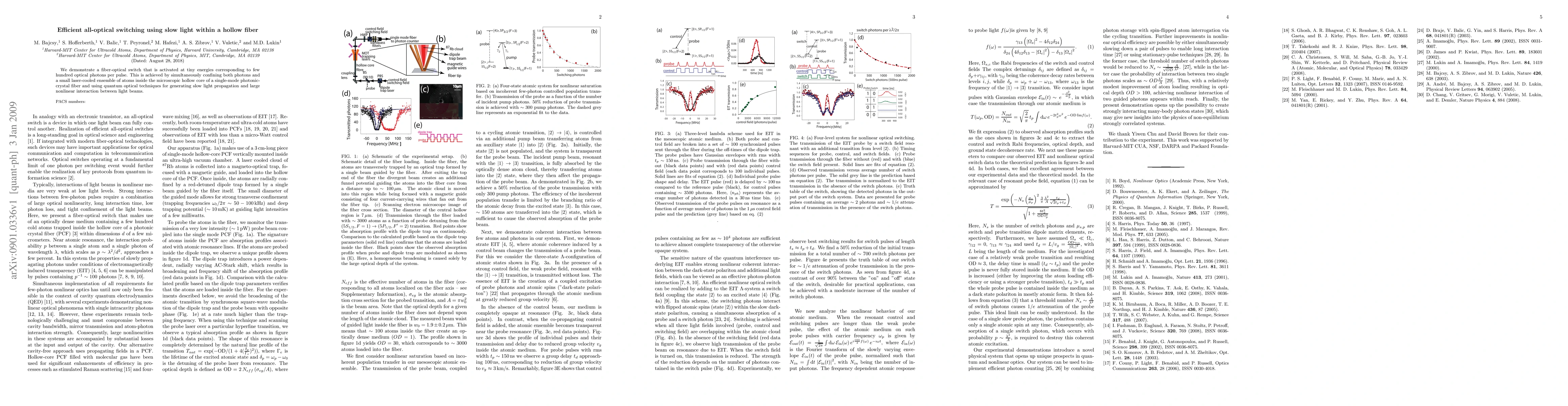This paper presents an efficient all-optical switch utilizing slow light within a hollow fiber, which operates at minimal energy levels using a few hundred photons per pulse. The switch leverages quantum optical techniques and a photonic-crystal fiber to achieve large nonlinear interactions between light beams.