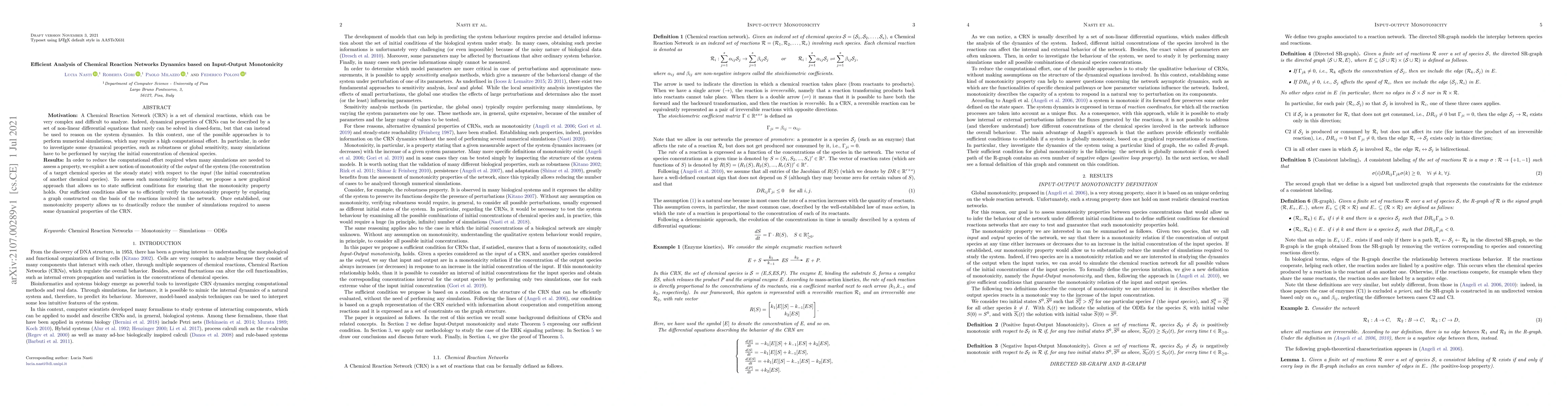 Motivation: A Chemical Reaction Network (CRN) is a set of chemical reactions, which can be very complex and difficult to analyze. Indeed, dynamical properties of CRNs can be described by a set of non-linear differential equations that rarely can be solved in closed-form, but that can instead be used to reason on the system dynamics. In this context, one of the possible approaches is to perform numerical simulations, which may require a high computational effort. In particular, in order to investigate some dynamical properties, such as robustness or global sensitivity, many simulations have to be performed by varying the initial concentration of chemical species. Results: In order to reduce the computational effort required when many simulations are needed to assess a property, we exploit a new notion of monotonicity of the output of the system (the concentration of a target chemical species at the steady-state) with respect to the input (the initial concentration of another chemical species). To assess such monotonicity behavior, we propose a new graphical approach that allows us to state sufficient conditions for ensuring that the monotonicity property holds. Our sufficient conditions allow us to efficiently verify the monotonicity property by exploring a graph constructed on the basis of the reactions involved in the network. Once established, our monotonicity property allows us to drastically reduce the number of simulations required to assess some dynamical properties of the CRN.