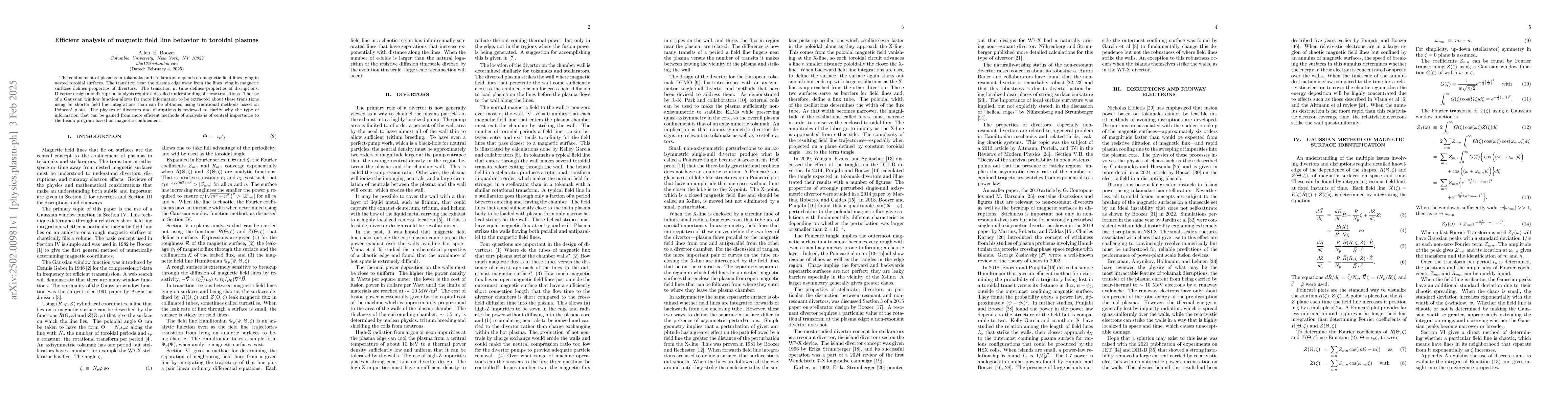 The introduction of an efficient Gaussian window function method for analyzing magnetic field line behavior in toroidal plasmas, offering insights into divertor physics and disruption dynamics.
