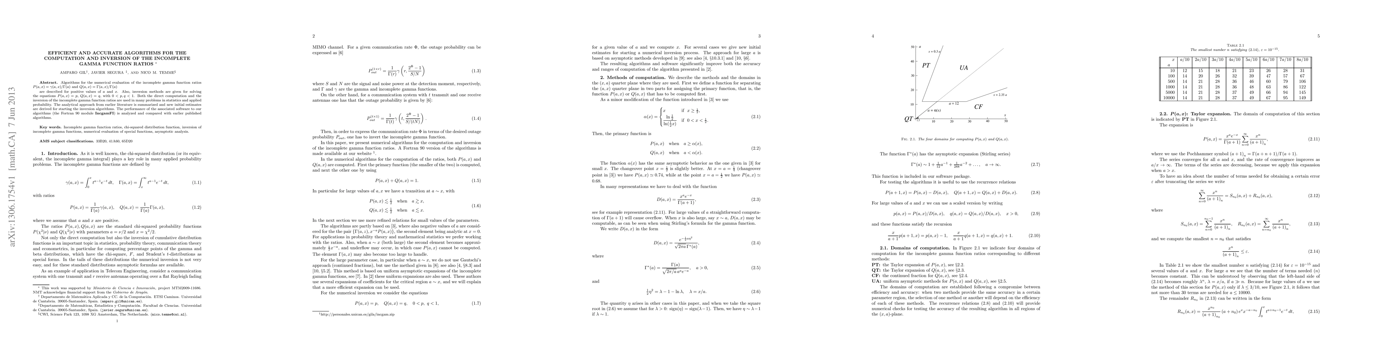 Algorithms for the numerical evaluation of the incomplete gamma function ratios $P(a,x)=\gamma(a,x)/\Gamma(a)$ and $Q(a,x)=\Gamma(a,x)/\Gamma(a)$ are described for positive values of $a$ and $x$. Also, inversion methods are given for solving the equations $P(a,x)=p$, $Q(a,x)=q$, with $0