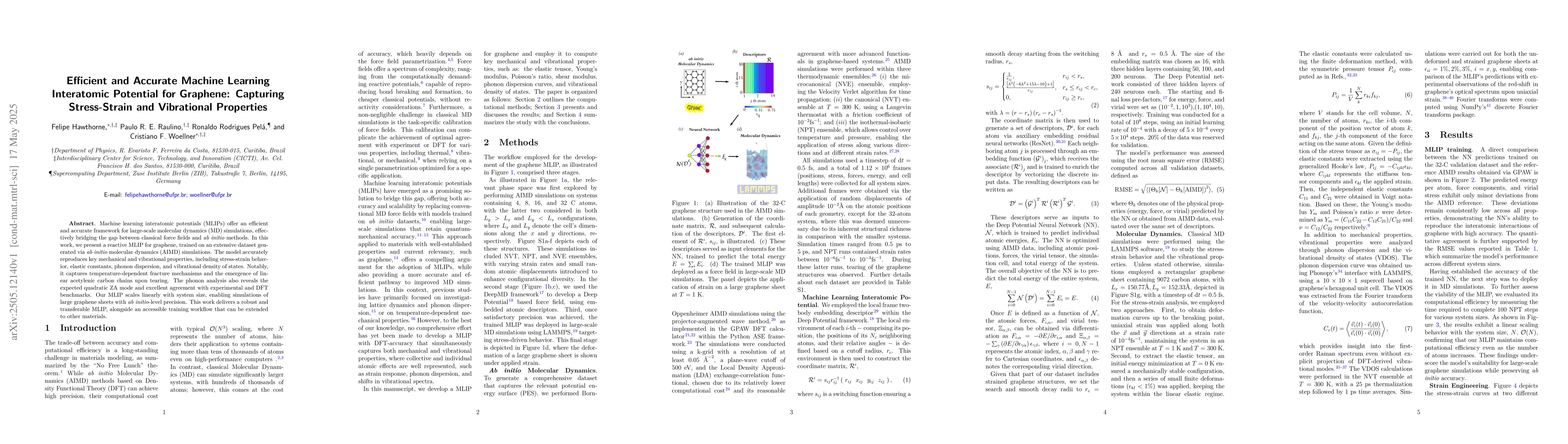 Researchers developed a machine learning interatomic potential for graphene that accurately captures stress-strain and vibrational properties, enabling large-scale simulations with ab-initio precision.
