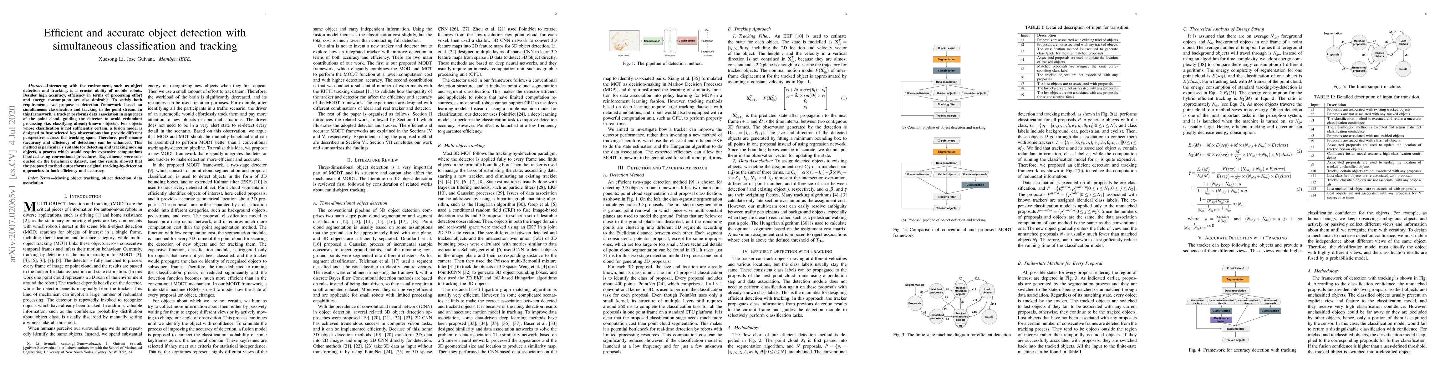 This paper proposes an efficient object detection framework that simultaneously performs classification and tracking in point cloud streams, optimizing both accuracy and processing efficiency. The method uses a tracker to guide the detector, reducing redundant processing, and employs a fusion model for uncertain classifications, achieving superior performance compared to traditional tracking-by-detection approaches.