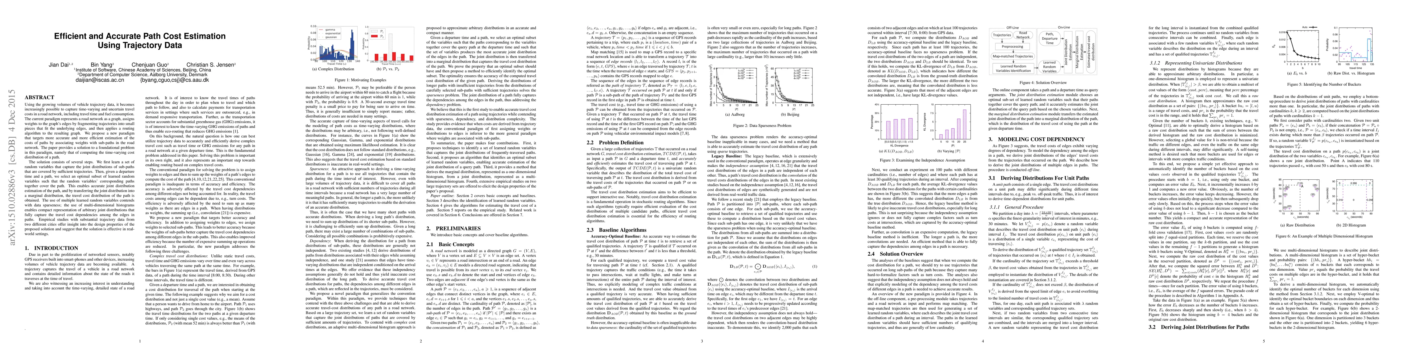 Using the growing volumes of vehicle trajectory data, it becomes increasingly possible to capture time-varying and uncertain travel costs in a road network, including travel time and fuel consumption. The current paradigm represents a road network as a graph, assigns weights to the graph's edges by fragmenting trajectories into small pieces that fit the underlying edges, and then applies a routing algorithm to the resulting graph. We propose a new paradigm that targets more accurate and more efficient estimation of the costs of paths by associating weights with sub-paths in the road network. The paper provides a solution to a foundational problem in this paradigm, namely that of computing the time-varying cost distribution of a path. The solution consists of several steps. We first learn a set of random variables that capture the joint distributions of sub-paths that are covered by sufficient trajectories. Then, given a departure time and a path, we select an optimal subset of learned random variables such that the random variables' corresponding paths together cover the path. This enables accurate joint distribution estimation of the path, and by transferring the joint distribution into a marginal distribution, the travel cost distribution of the path is obtained. The use of multiple learned random variables contends with data sparseness, the use of multi-dimensional histograms enables compact representation of arbitrary joint distributions that fully capture the travel cost dependencies among the edges in paths. Empirical studies with substantial trajectory data from two different cities offer insight into the design properties of the proposed solution and suggest that the solution is effective in real-world settings.