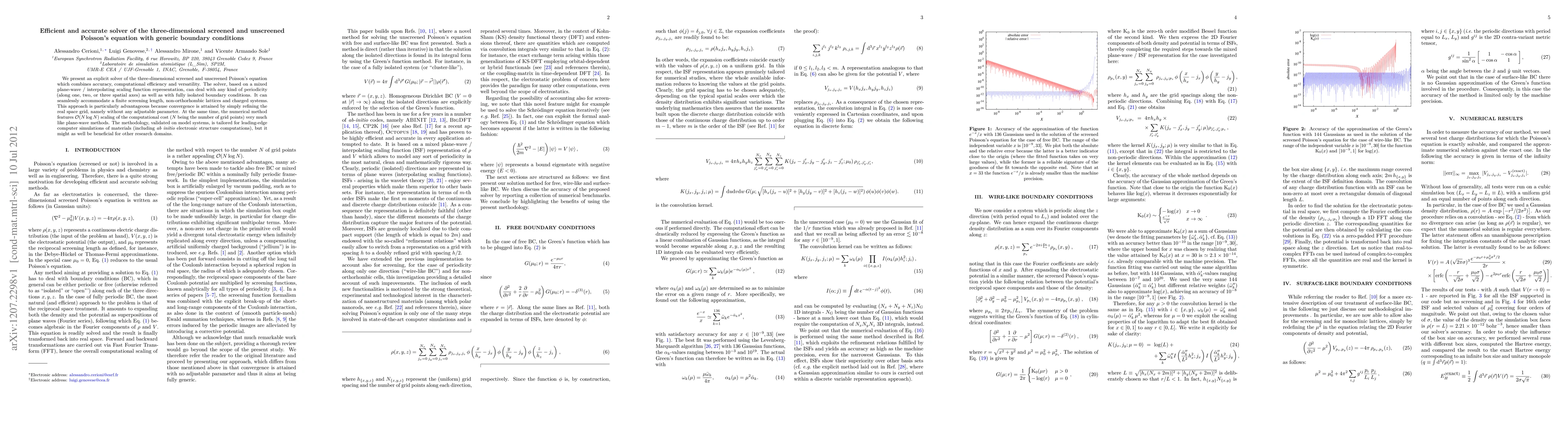 We present an explicit solver of the three-dimensional screened and unscreened Poisson's equation which combines accuracy, computational efficiency and versatility. The solver, based on a mixed plane-wave / interpolating scaling function representation, can deal with any kind of periodicity (along one, two, or three spatial axes) as well as with fully isolated boundary conditions. It can seamlessly accommodate a finite screening length, non-orthorhombic lattices and charged systems. This approach is particularly advantageous because convergence is attained by simply refining the real space grid, namely without any adjustable parameter. At the same time, the numerical method features O(N log N) scaling of the computational cost (N being the number of grid points) very much like plane-wave methods. The methodology, validated on model systems, is tailored for leading-edge computer simulations of materials (including ab initio electronic structure computations), but it might as well be beneficial for other research domains.