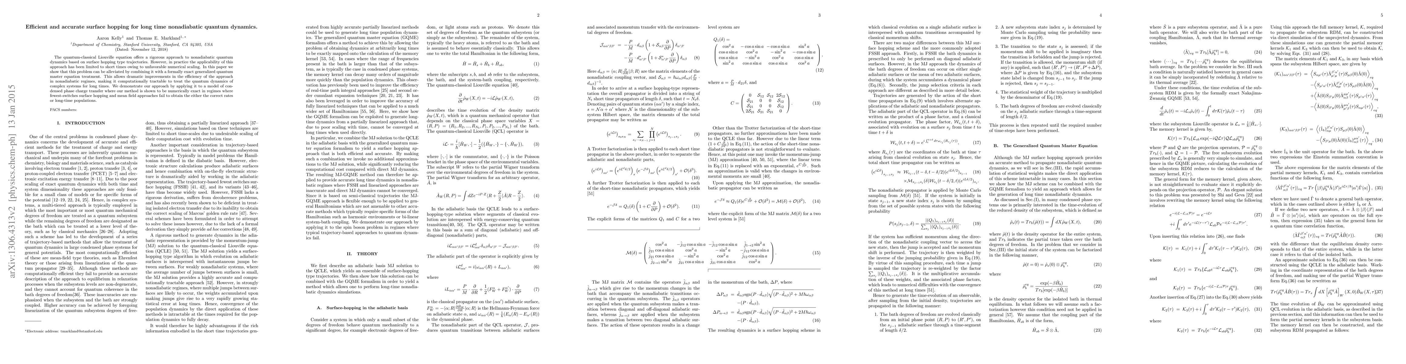The quantum-classical Liouville equation offers a rigorous approach to nonadiabatic quantum dynamics based on surface hopping type trajectories. However, in practice the applicability of this approach has been limited to short times owing to unfavorable numerical scaling. In this paper we show that this problem can be alleviated by combining it with a formally exact generalized quantum master equation treatment. This allows dramatic improvements in the efficiency of the approach in nonadiabatic regimes, making it computationally tractable to treat the quantum dynamics of complex systems for long times. We demonstrate our approach by applying it to a model of condensed phase charge transfer where our method is shown to be numerically exact in regimes where fewest-switches surface hopping and mean field approaches fail to obtain the either the correct rates or long-time populations.