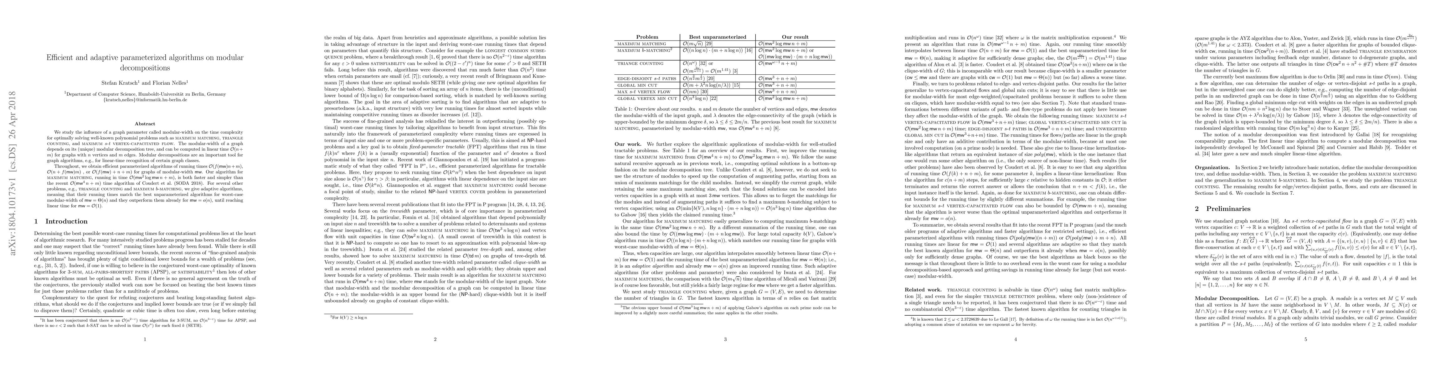 We study the influence of a graph parameter called modular-width on the time complexity for optimally solving well-known polynomial problems such as Maximum Matching, Triangle Counting, and Maximum $s$-$t$ Vertex-Capacitated Flow. The modular-width of a graph depends on its (unique) modular decomposition tree, and can be computed in linear time $O(n+m)$ for graphs with $n$ vertices and $m$ edges. Modular decompositions are an important tool for graph algorithms, e.g., for linear-time recognition of certain graph classes. Throughout, we obtain efficient parameterized algorithms of running times $O(f(mw)n+m)$, $O(n+f(mw)m)$ , or $O(f(mw)+n+m)$ for graphs of modular-width $mw$. Our algorithm for Maximum Matching, running in time $O(mw^2\log mw \cdot n+m)$, is both faster and simpler than the recent $O(mw^4n+m)$ time algorithm of Coudert et al. (SODA 2018). For several other problems, e.g., Triangle Counting and Maximum $b$-Matching, we give adaptive algorithms, meaning that their running times match the best unparameterized algorithms for worst-case modular-width of $mw=\Theta(n)$ and they outperform them already for $mw=o(n)$, until reaching linear time for $mw=O(1)$.