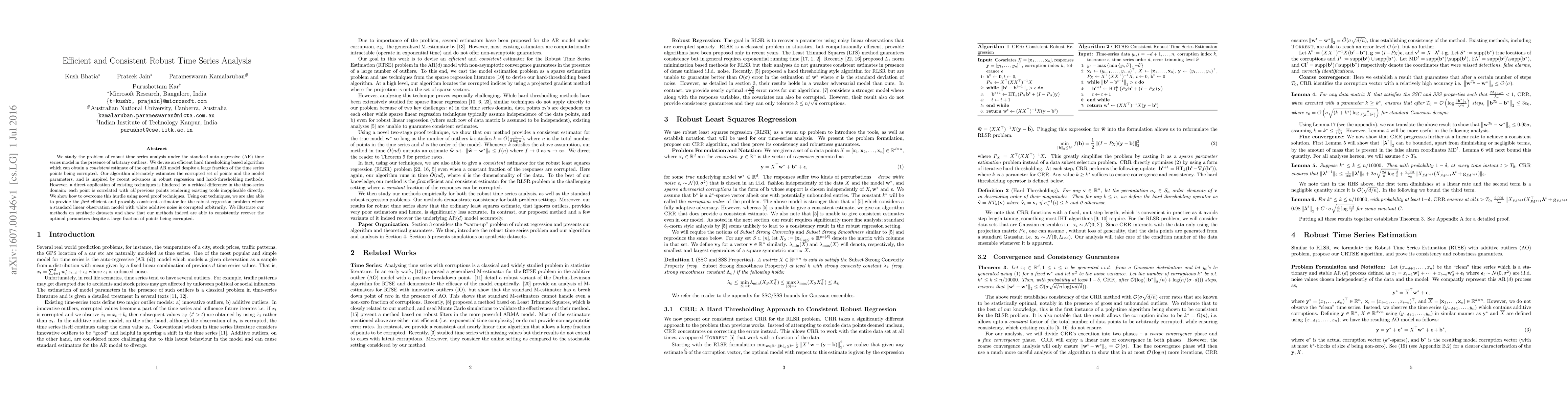 Researchers develop an efficient algorithm to analyze time series data with outliers, providing a consistent estimate of optimal model parameters despite corruption.