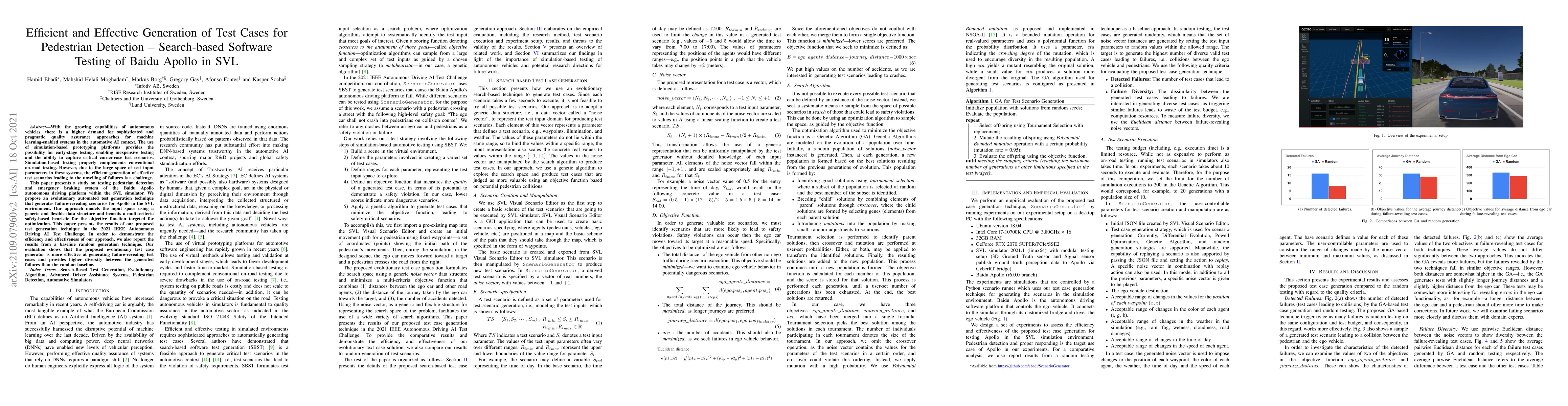 A research paper proposes an efficient test case generation technique for autonomous vehicles, which outperforms a random baseline in generating failure-revealing scenarios.