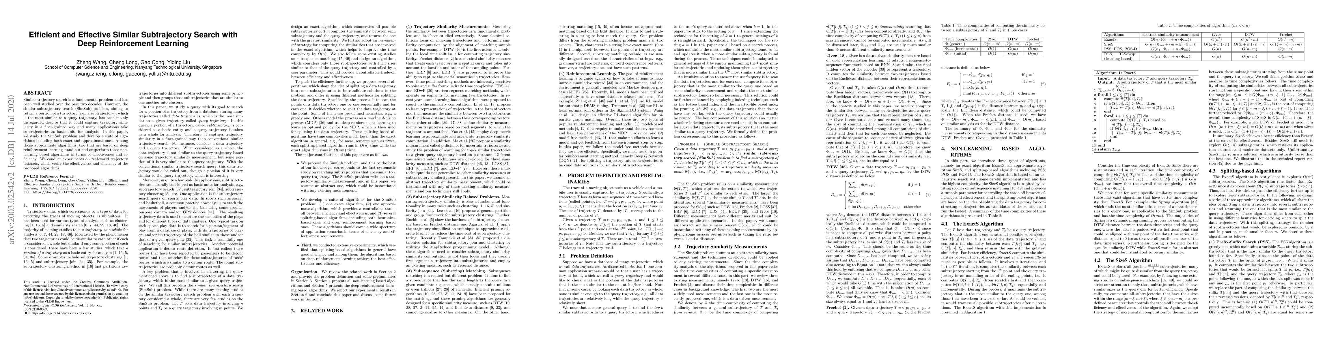 This paper introduces algorithms for efficient similar subtrajectory search, focusing on deep reinforcement learning methods that outperform traditional non-learning approaches in both effectiveness and efficiency. Experiments on real-world datasets confirm the superiority of the proposed deep reinforcement learning-based approximate algorithms.