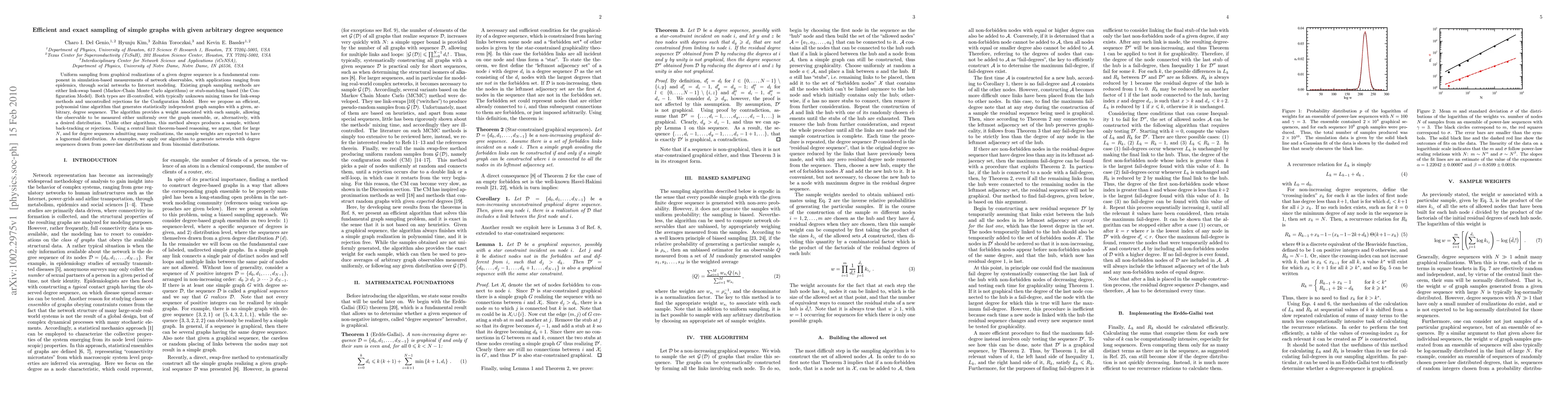 This paper proposes a polynomial-time algorithm for efficiently sampling simple graphs that match a given arbitrary degree sequence, offering controlled generation of statistically independent samples without rejections or back-tracking. The method can measure network observables uniformly or with a specified distribution, and is applied to networks with degree sequences from power-law and binomial distributions.