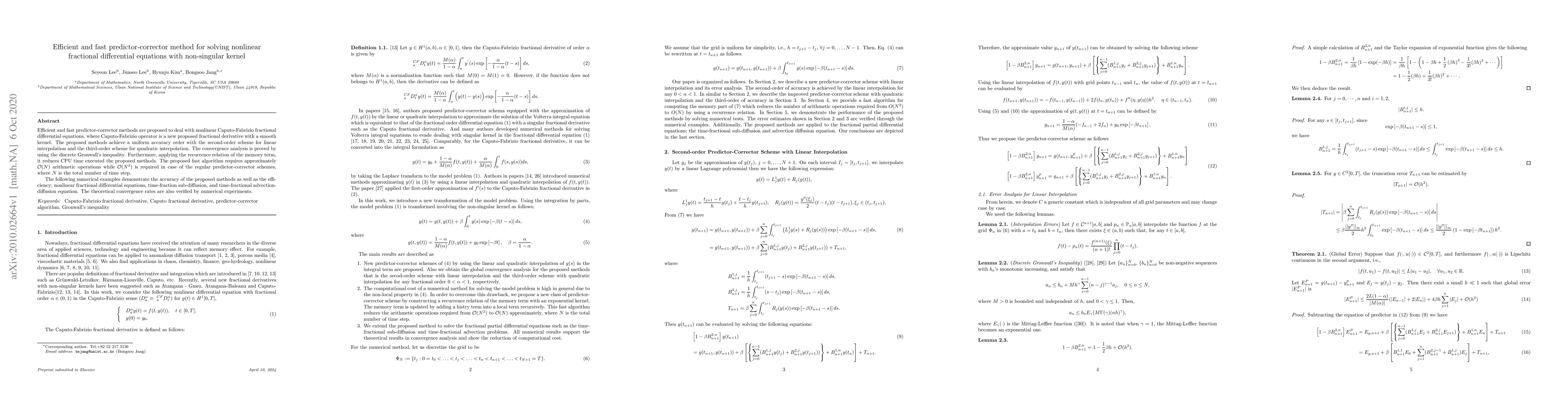 This paper proposes efficient predictor-corrector methods for solving nonlinear Caputo-Fabrizio fractional differential equations, achieving uniform accuracy and significantly reducing computational time compared to traditional schemes. The methods demonstrate second-order and third-order accuracy for linear and quadratic interpolation, respectively.